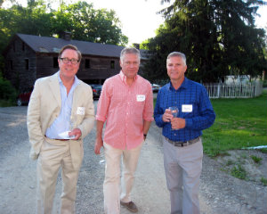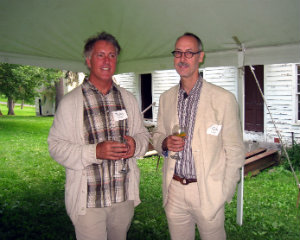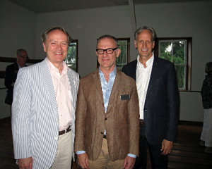 Lisa Green reports from New Lebanon. “It’s a flowering season for all things Shaker," declared David Stocks, president of the Shaker Museum | Mount Lebanon at the opening of Francis Cape’s Utopian Benches exhibition on Saturday, June 21. Due to a death in his family, the artist was unable to be present, but Jeff Bailey, trustee and gallerist, spoke about the exhibition as guests sat on the 20 poplar benches, meticulous copies of Shaker benches and symbols of sharing and community in both an historic and contemporary context. Guests learned that the museum has recently closed on the purchase of 61 adjacent acres of historic Shaker property, and that an “Adopt A Lintel" fundraising campaign is in place to reconstruct and repair the Great Stone Barn — the largest stone barn in America — which was ravaged in a fire in 1972. After aperitifs outdoors on what may have been the most glorious summer solstice ever, guests dispersed to dinners in the homes of museum trustees. Shown left: Jeff Daly, board chairman and museum design consultant, David Stocks, museum president, and Mark Schaming, director of the New York State Museum.