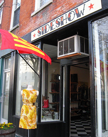 When Club Helsinki closed last year, "It broke my heart," says Meri Avratin, who had been a bartender there for over seven years. "I still miss it. For me, it was the cultural epicenter of the Berkshires, and I loved being part of it." With the center ring suddenly dark, Avratin cast about for something new to do, and, a year ago, she opened Sideshow Clothing Co., purveyors of vintage and used clothing for men and women, in Sheffield, MA. Recently, she relocated her store from the tiny space it had occupied on Route 7, just south of Great Barrington, to a much larger storefront across from the park in the 700 block of Warren Street in Hudson.