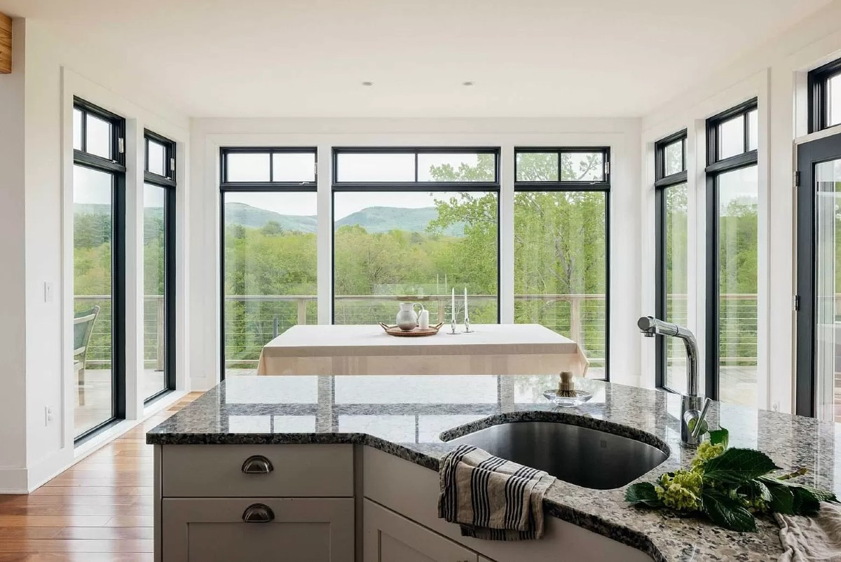 The approach to this Copake home curves through the landscape to expose a view of the Bash Bish gap and Taconic Mountain range. There are five bedrooms and five bathrooms in over 4,000 square feet. Soaring ceilings, walls of windows and exterior decks bring the outside in. There is a screened-in porch and open air deck off the kitchen/dining area. A geothermal heating and cooling system has been installed. Listed at $2,500,000 by Four Seasons Sotheby's International Realty.
