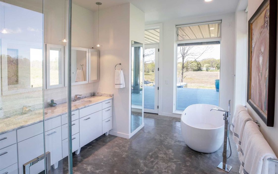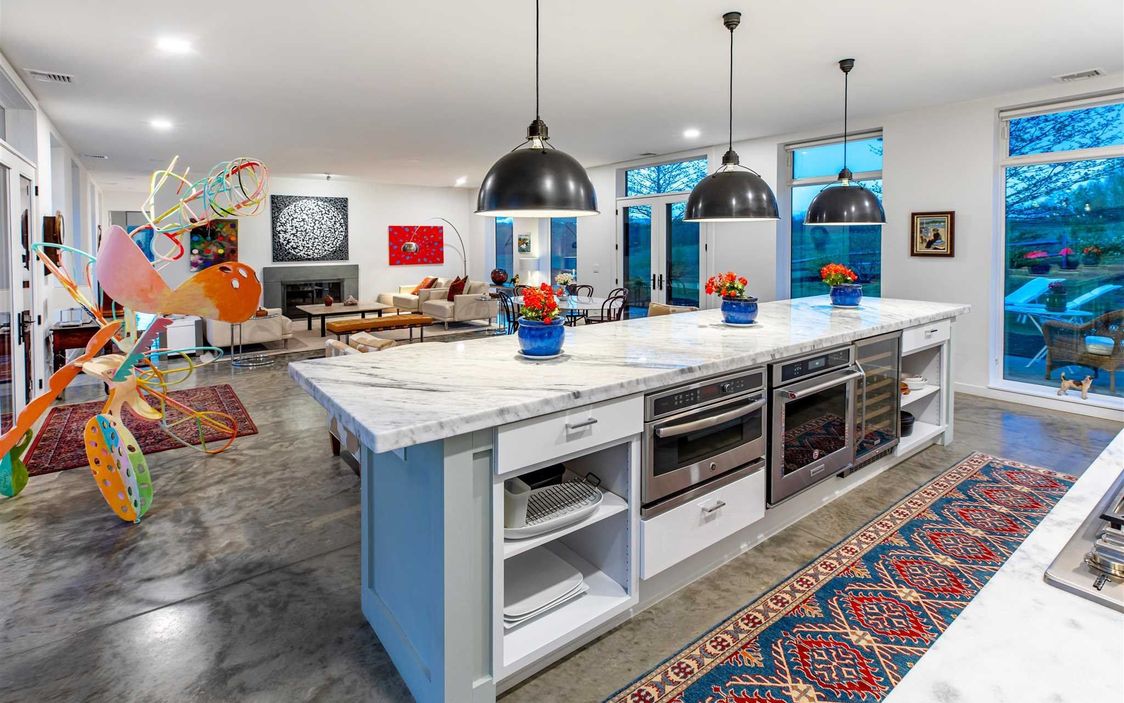 This Contemporary in Rhinebeck was built in 2018, so it was constructed using the highest, most modern technology. There are three bedrooms and four bathrooms, a woodburning fireplace, gourmet plus bonus prep kitchen, den/study and an outdoor blustone patio. The house offers radian heat and central AC; a 24-hour air exchanger brings in continual fresh air. Sunrises and sunsets are on view in every room. Listed at $2,295,000 by Houlihan Lawrence.