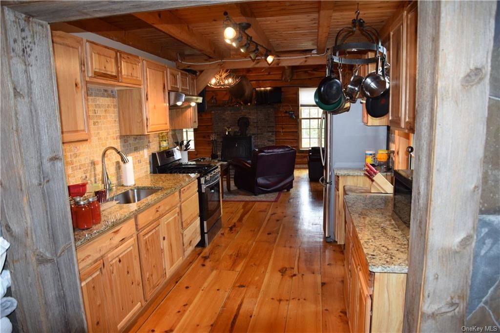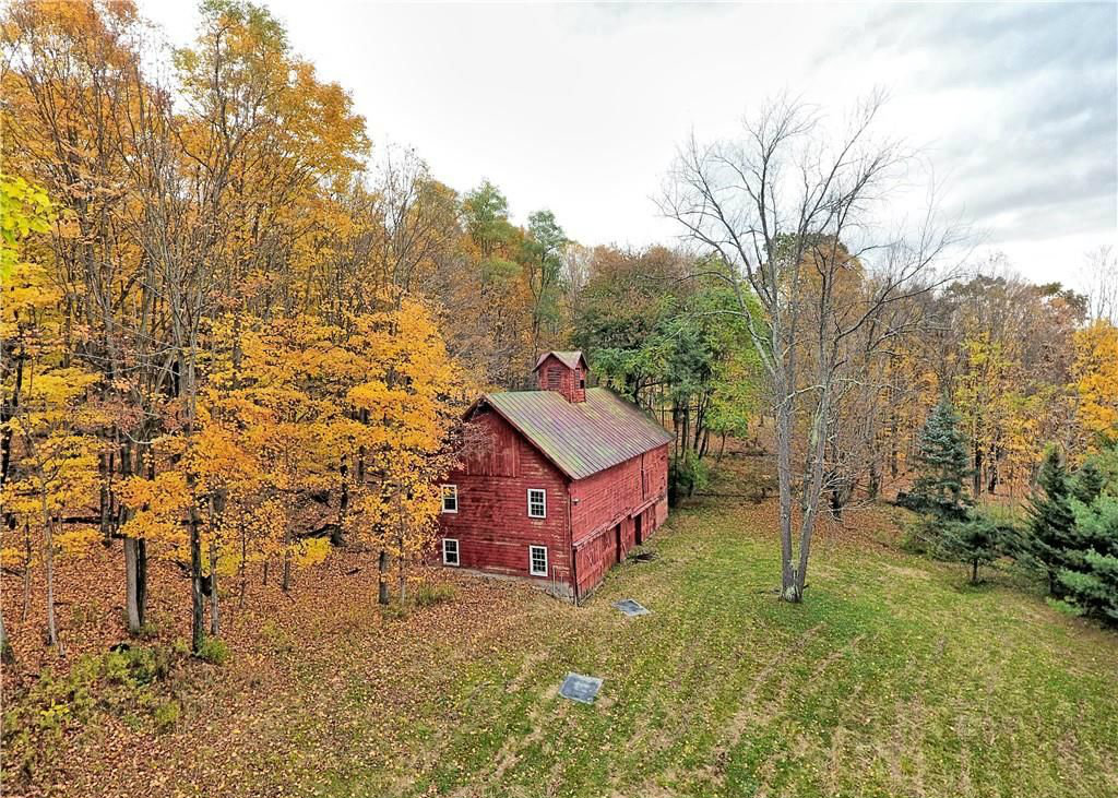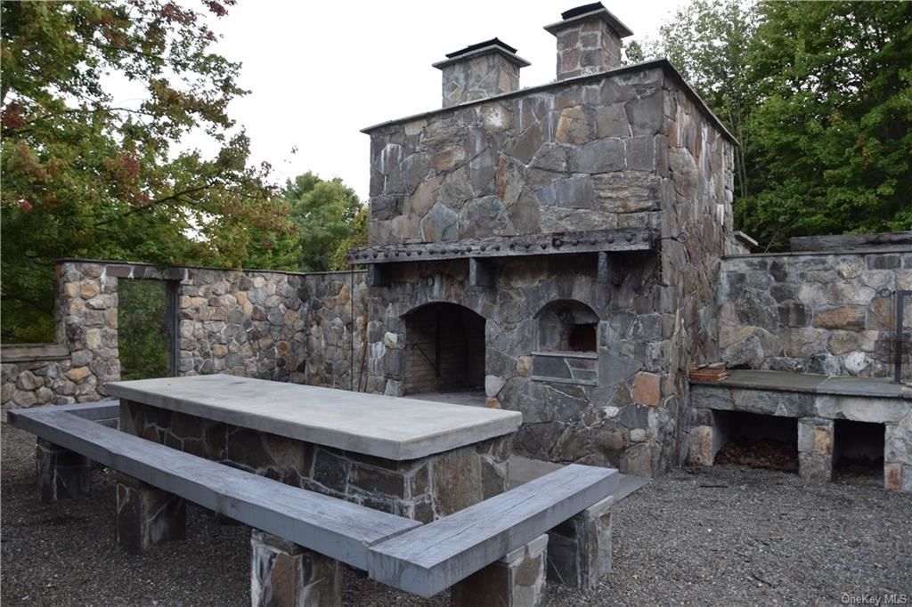 A stone ranch-style home is 900 square feet inside, but is surrounded by almost 60 acres of land, plus a barn. Built in 1999, the one-bedroom, one-bathroom house has a metal roof, Marvin windows, and a modern kitchen. The massive outdoor grill is accompanied by a pizza oven, outdoor fireplace, and a custom-built table. The land has apple and pear trees, a small pond and many oak trees. Listed at $665,000 by Better Homes and Garden Rand Realty.