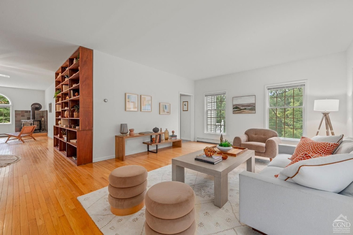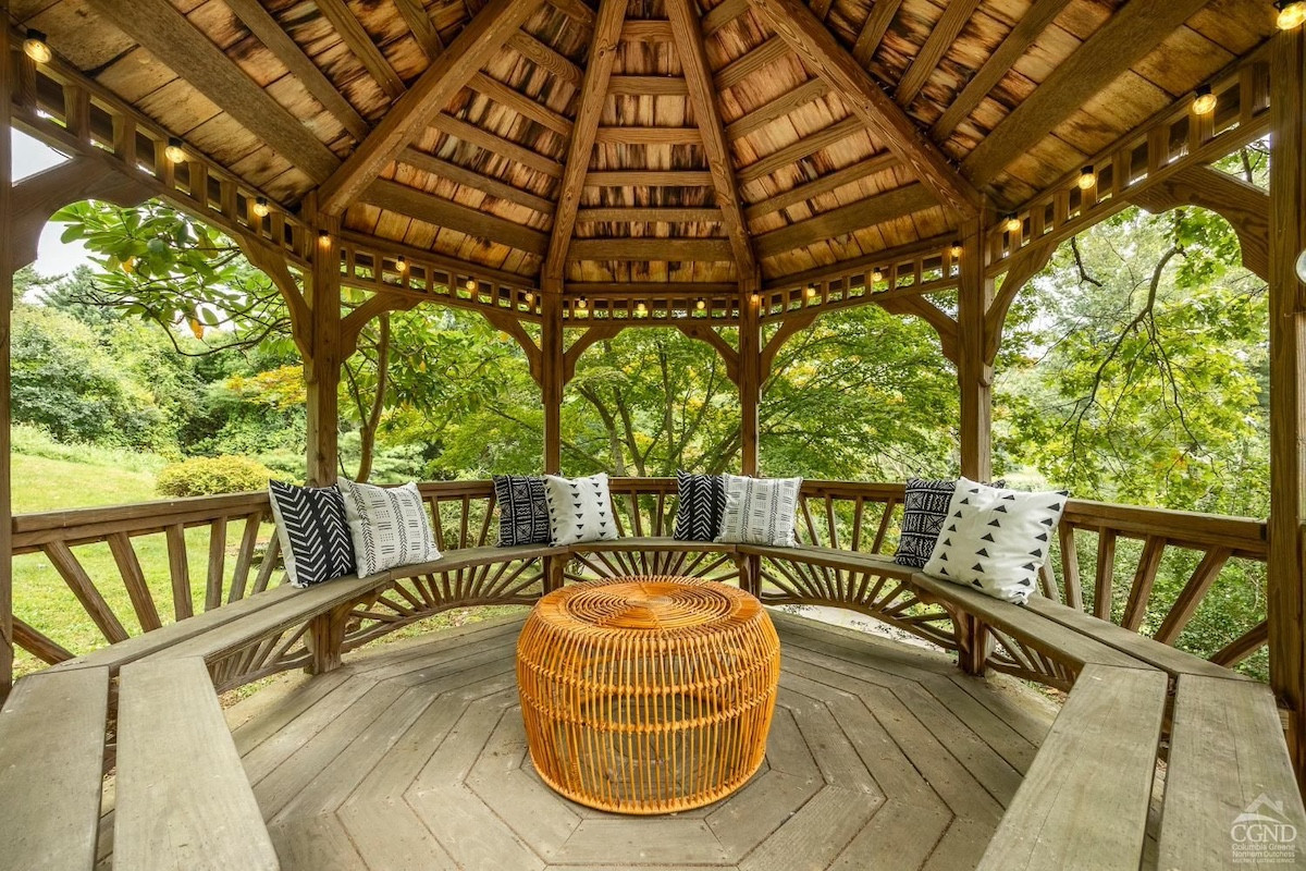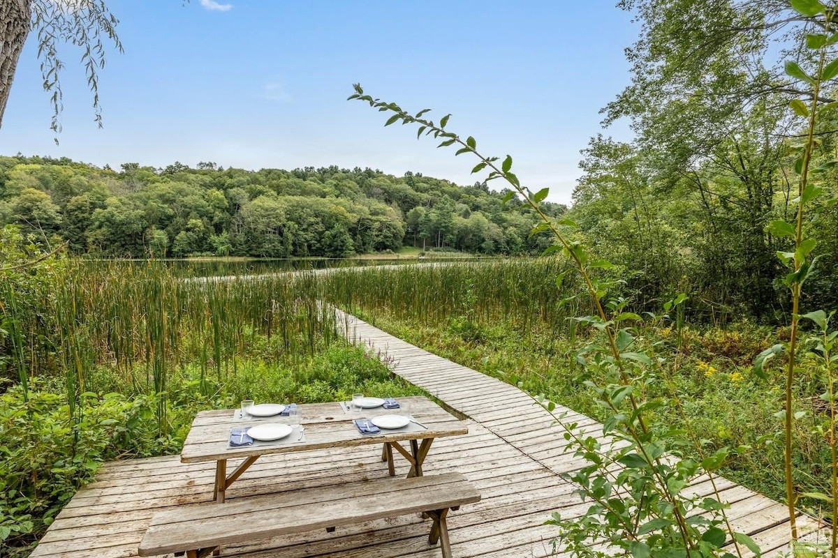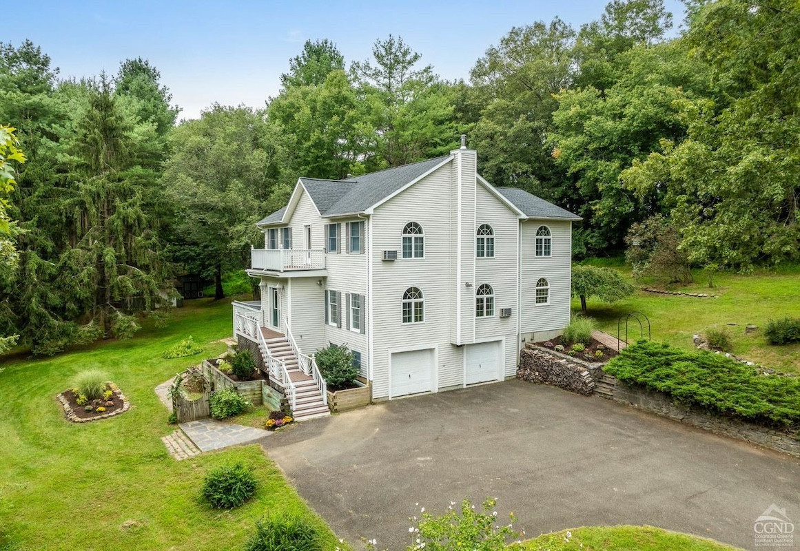 Set beside Snyder Pond in Copake, this Colonial home offers a private dock. There are four bedrooms and three bathrooms, a grand foyer, an oversized living room, a family room, and a three-season sunroom. The primary suite upstairs is a sanctuary, and the lower level features three additional versatile areas. Other amenities include a two-car garage, basement, and security system. Listed at $695,000 by Compass.