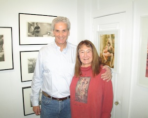 Mark Williams reports from Stockbridge. Rain was pouring, but the diminutive Sohn Fine Art Gallery in Stockbridge was crowded with people who love photography on Saturday, January 11. The current exhibition, Nude, features photography and mixed media by John Atchley, Peggy Braun, John Clarke, Greg Gorman, Eric Korenman, Hildy Kronen, Jack Krove, Mona Mark, Matuschka, Irmari Nacht, Cassandra Sohn, Savannah Spirit and Lincoln Russell, who was on hand at the opening (seen at left with Gallery owner Cassandra Sohn). Russell spoke about his work and signed copies of his books, which included limited collector editions of Artist Seeking Models, Adventures in Burgundy, and An Intimate Portrait of Seiji Ozawa, Music Director of the Boston Symphony Orchestra. He explained how his nude photography was created using highly complicated and sophisticated techniques which often allow the models and Lincoln himself to move around in the photograph while it's being taken, leading to almost dreamlike scenes. The exhibition continues through March.