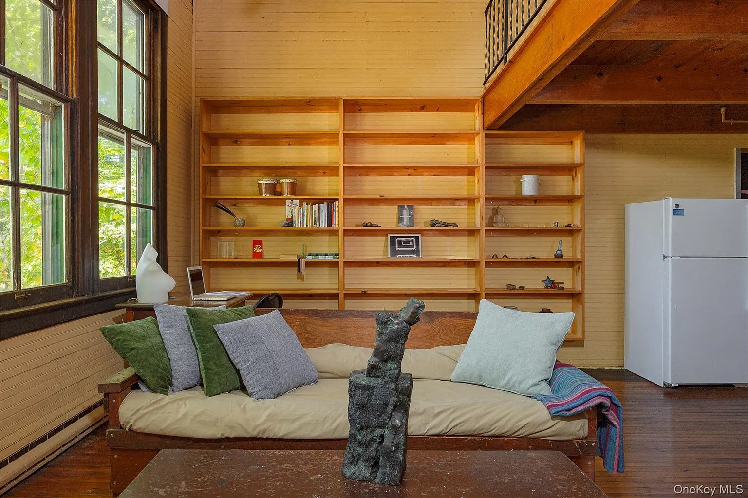 Outside, there’s a two-tiered sun deck and a detached artist studio, built in 2019 to match the house’s crafty feel with pine floors and complimentary skylights. The property is 1.5 acres, close to Lake Taghkanic, and 15 minutes to Hudson and Amtrak.