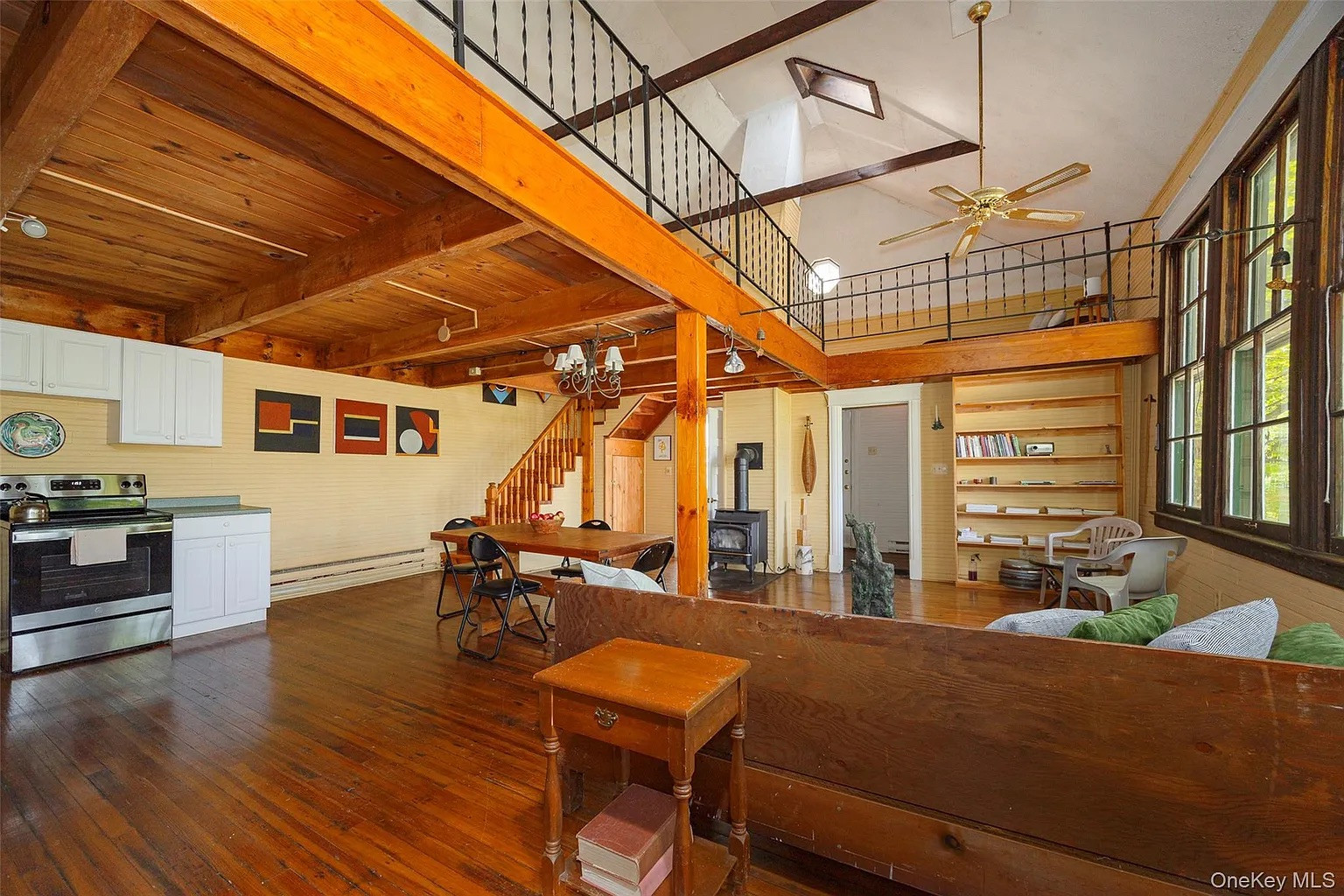 The phrase “artist’s dream” is thrown around a lot, but this is the real thing. This solitary studio at 220 West Pond Lily Road in Elizaville is a former one-room schoolhouse with just 1,100 square feet, one bedroom, and one bathroom. Built in 1900 with lovingly preserved wood beams and added skylights, this is Pinterest-worthy cozy comfort, including a sleeping loft and main room with propane stove. The bathroom is fully renovated but retains some of the house’s old rustic charm.