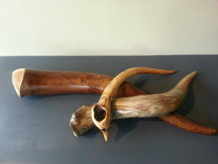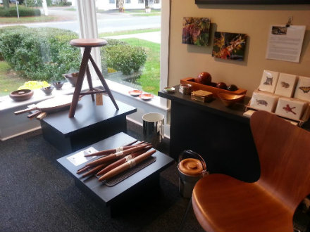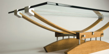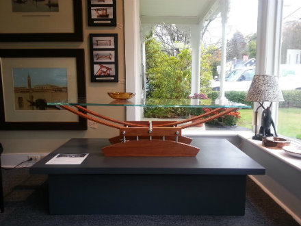 Other finds are the result of a phone call from fellow Falls Village resident Frank Grusauskas. His products are fashioned from found wood. Knight falls under their spell and makes room for ebonized wood containers ($360-$400), a large burled bowl ($450), and the most amazing wooden horns, some carved out of mountain laurel ($200-$600.) One of the most striking pieces on display is a coffee table ($2,600) by the aforementioned Bryan Jernigan. “He married a cousin of mine and it was in their living room," Knight recalls. In Jernigan’s creations, the glass top appears to be suspended in air, but a glance beneath reveals artfully crafted wooden supports. With a nod to form over function, the base is graceful yet substantial, and arcs sculpted from wood provide an arresting image. Artistic influences abound. Knight professes his admiration of the work of Frank Lloyd Wright and Mies van der Rohe. He also enjoys visiting The Noguchi Museum in Long Island City and taking in the Seagram building, a van der Rohe design, in Manhattan.