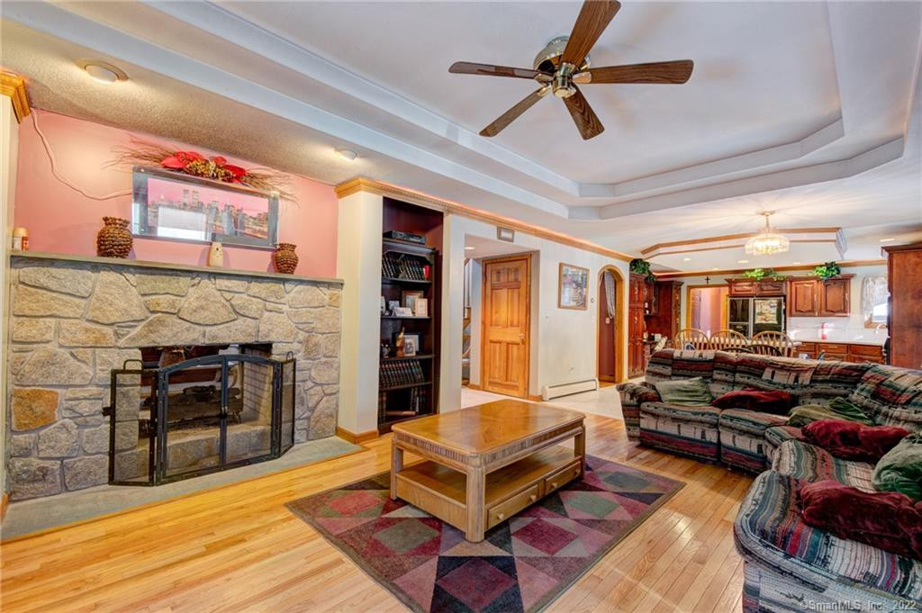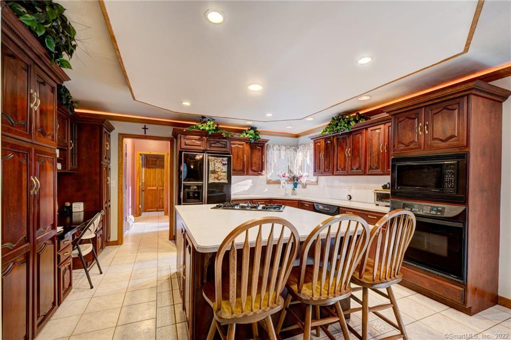 A Colonial-style home close to Torrington has five bedrooms and four bathrooms in 3320 square feet. There is a two-car garage and the property, surrounded by nature, has its own beautiful pond. The basement has potential as an in-law apartment. Listed at $500,000 by William Raveis.