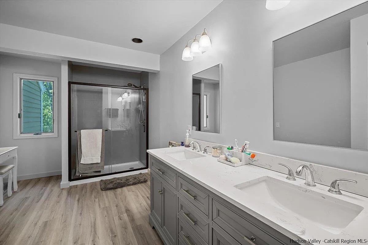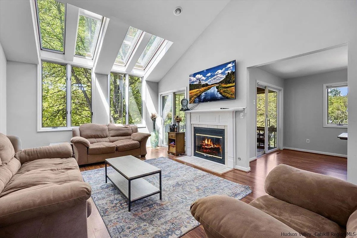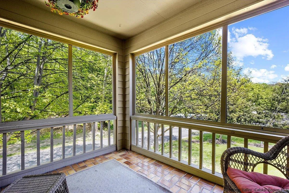 With two bedrooms and two bathrooms in 2,377 square feet, this condo in Poughkeepsie offers spaciousness on two stories. It features a floating balcony, large windows, and tall skylights to bring in an abundance of natural light. The eat-in kitchen provides a view of a private courtyard. There is also a formal dining room and a den. The screened-in porch offers a water view, and there is an attached garage. Listed at $394,999 by Exp Realty.