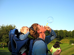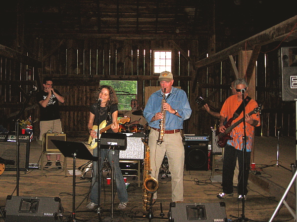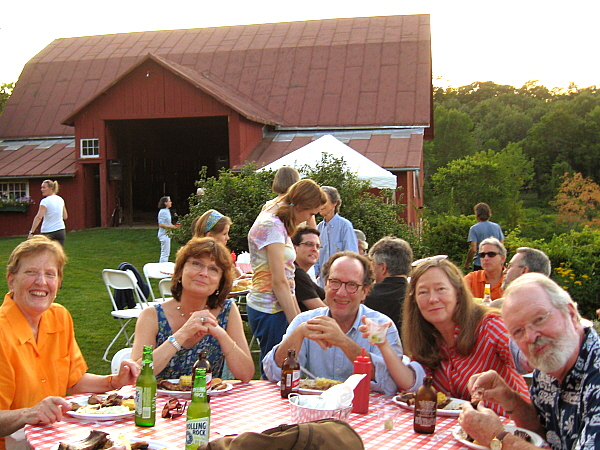 It was perfect weather for blowing bubbles (Mike Grenny astonishing his daughter Lila, left) on Saturday night, and for the Spencertown Academy's beer-straight-from-the-bottle with pulled-pork-and-ribs-barbecue at Austerlitz Town Supervisor George Jahn's farm in Spencertown. Let's Eat, the academy's incomparable in-house caterers, weren't the only ones cooking: Academy member Cathy Grier, on guitar and vocals, with the blues band, The Gentlemen of the Night, turned up the heat and had everyone dancing into the sultry night.