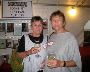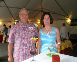 Gary Igleburger and Beverly Igleburger enjoy a glass of wine before the doors open for the book sale.