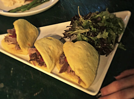 Spiced Steamed Buns with Miso-Maple Pulled Chicken And PumpkinMakes 50 steamed buns For the Pulled Chicken1½ lbs. boneless skinless chicken thighs 1 small sugar pumpkin, peeled, seeded and medium diced (about 3 cups) 1 white onion, cut into medium dice (about 1 cup) ½ cup miso paste 1¼ cup organic maple syrup 1 cup organic chicken stock Kosher salt and freshly ground black pepper Vegetable oil for frying 1. Position a rack in the center of the oven and heat to 325 degrees. Season chicken with salt and pepper. 2. Heat 3 tbs oil in a large oven-proof braising pan over medium-high heat until wisps of smoke appear. 3. Add chicken and sauté until golden brown on both sides (about 2 minutes per side). Remove and set aside. 4. Add pumpkin and onion, and cook until slightly softened and caramelized (about 4 minutes). 5. Add the chicken stock, miso paste and maple syrup and stir until combined. 6. Place the chicken thighs snugly in a single layer on top of the sauce. Cover and bake for one hour. 7. Using a fork, shred the chicken, mash and stir all other ingredients and keep warm.