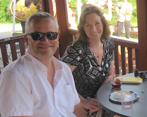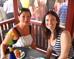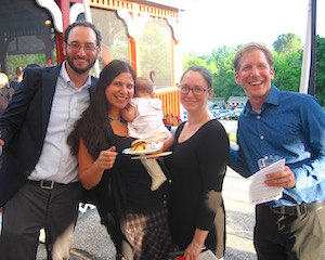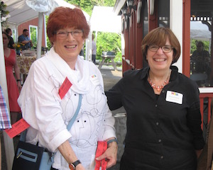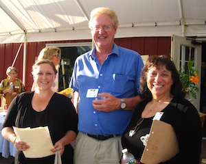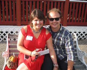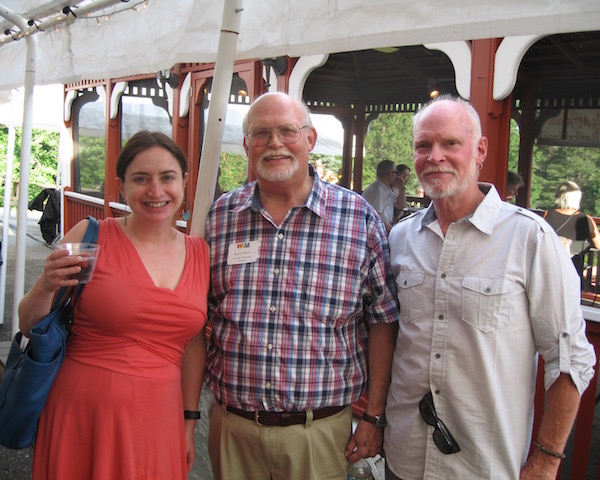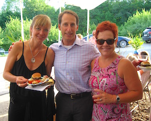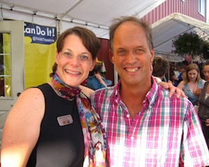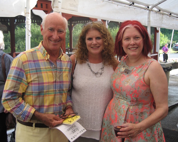 Rachel Louchen reports from Richmond. The forecast may have predicted severe thunderstorms but from the enthusiastic turnout, it was clear that WAM Theatre's benefit cocktail party would have gotten a draw regardless of the weather. Under bright blue skies, Stars in the Orchard returned for a second year on Thursday, July 14, again at Hilltop Orchards. The event featured a raffle, silent auction, and live auction. A major fundraiser for the philanthropic theater company, it was also an opportunity for founder and artistic director Kristin van Ginhoven [left, with Hilltop Orchards owner John Vittori] to announce that Berkshire Immigrant Center and Suzi Banks Baum (for her Armenian female empowerment project) will be the 2016 beneficiaries of WAM's production of "The Bakelite Masterpiece" in the fall. In true WAM fashion, the evening included performances by Girls Inc. and festive music provided by the Expandable Brass Band. And apple cider doughnuts, of course.