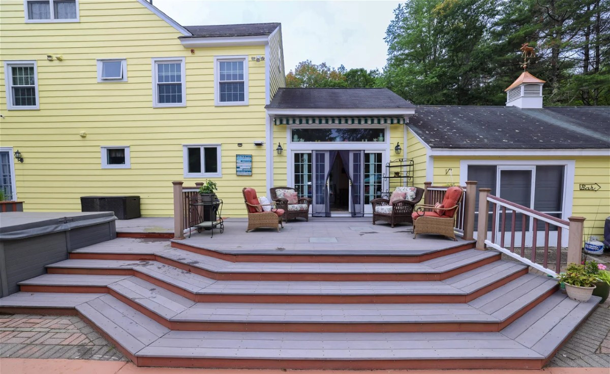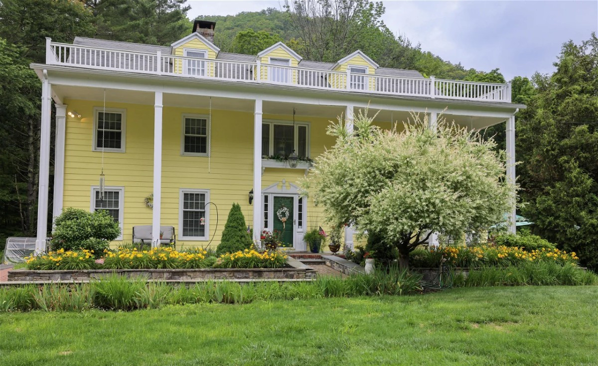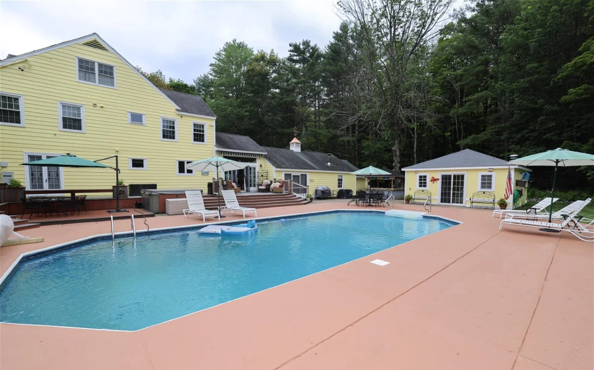 Located on 20 acres surrounded by the Sandisfield State Forest, this home, built in 1945, offers an impressive foyer, five bedrooms and four bathrooms, a well-appointed kitchen and large formal dining room. Outside there is an oversized patio with a heated pool, a pool house, an outdoor bar, and a fire pit. Swings and a large yard await kids and grandkids. A two-car garage includes an attached "man cave." Listed at $1,049,000 by Housatonic Real Estate.