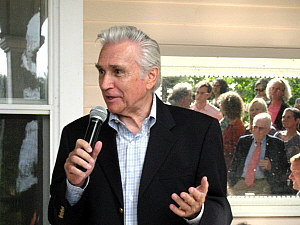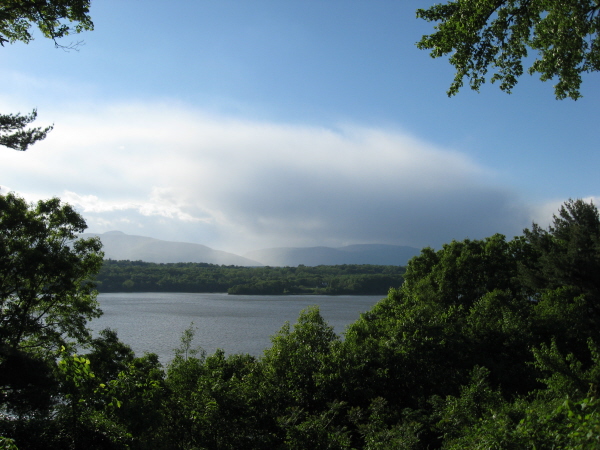 It was a party with a beautiful purpose. On Saturday, as the mighty and the almost meek met on the grounds of Joan Davidson's elegantly unpretentious riverfront property for their annual update on efforts to preserve the glories of the Hudson River Valley, speechifying politicians didn't stand a chance against the silent profundity of the view (above). Nonetheless, two United States Congressmen and a State Parks Commissioner preached to an appreciative choir, giving thanks where it was due throughout the crowd, none more so than to the hostess herself.