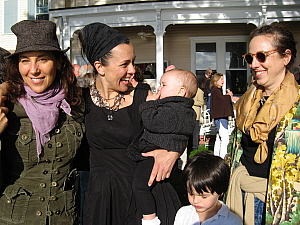 Stef-Albert Bothma with Sophie and James Male with Buster Brown; the photographer Valerie Shaff, Martine Arfwidson and her children, and Sheva Fruitman
