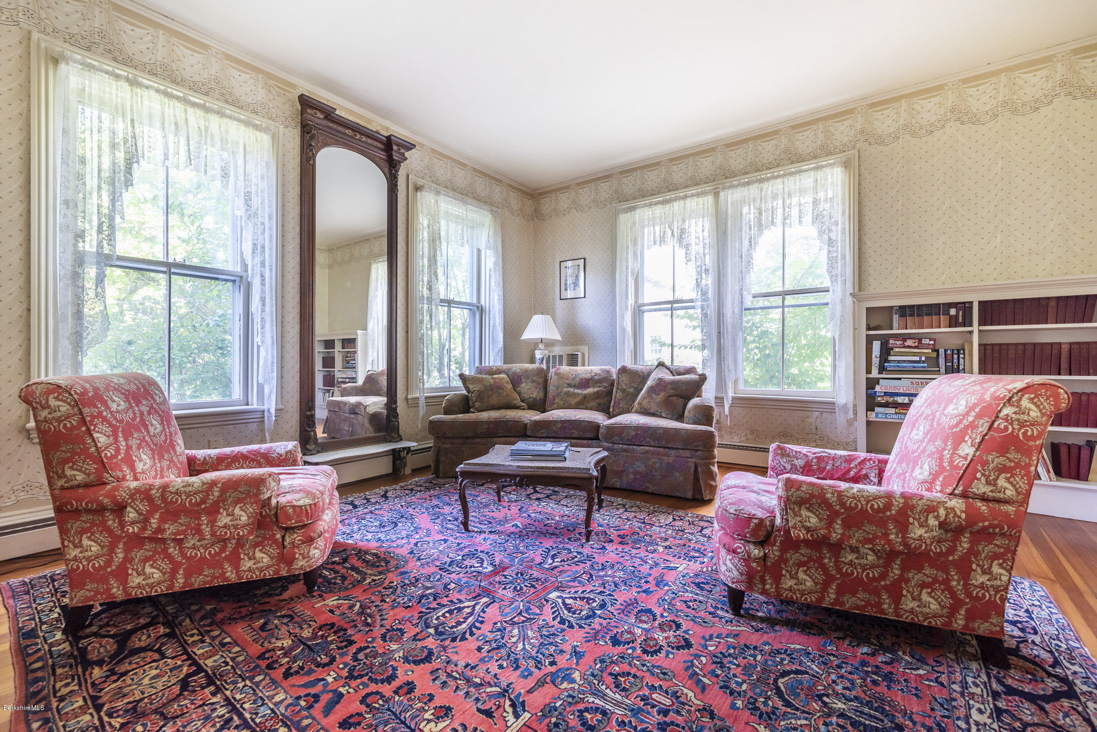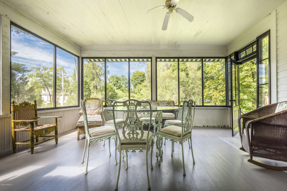 This five-bedroom and six-bathroom Stockbridge Colonial was built in 1900. It has a large living room, dining room, parlor and eat-in country kitchen. There are five bedrooms and five-and-a-half bathrooms. The third floor is finished with a gaming room, storage and a bonus room. There is a large screened in porch and a private tranquil site with an easy stroll into town and other nature trails. Listed for $749,000 by Roberts & Associates Realty.