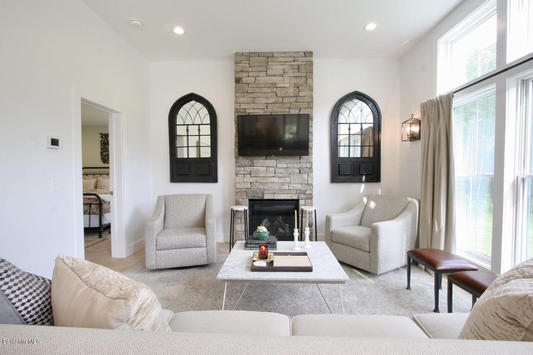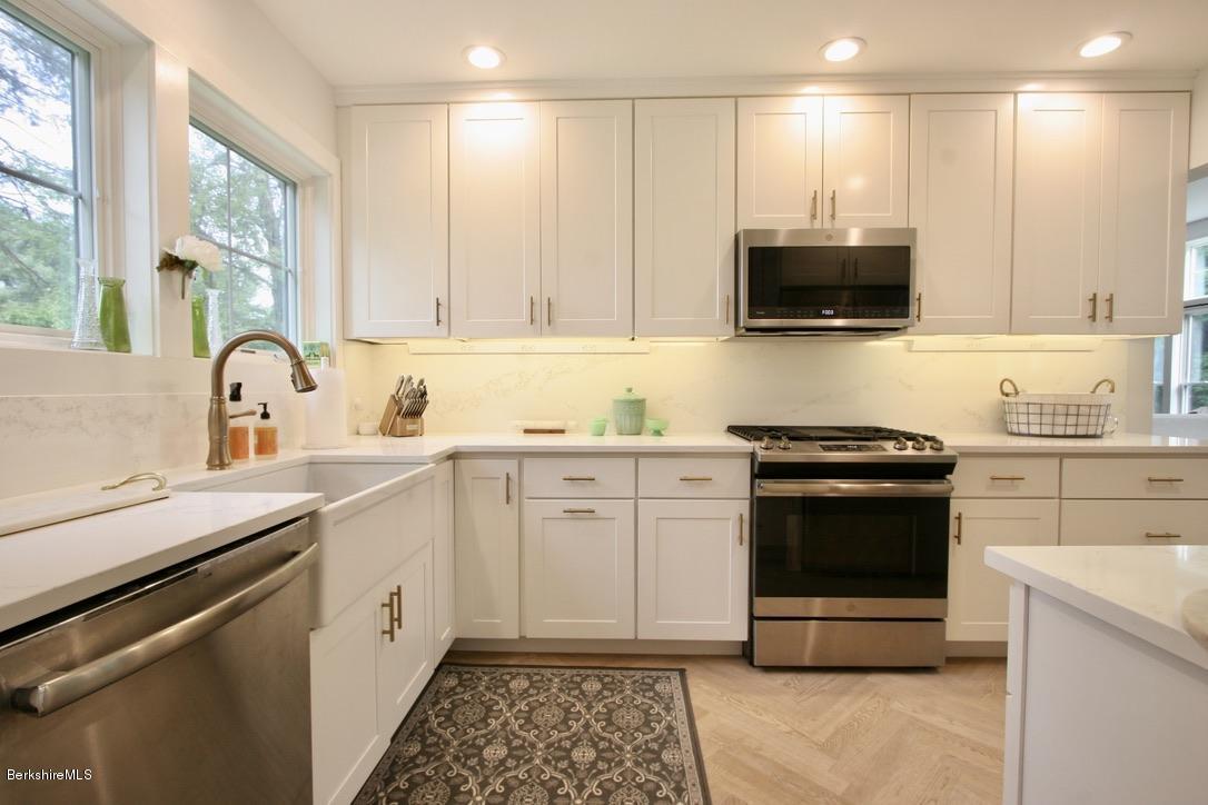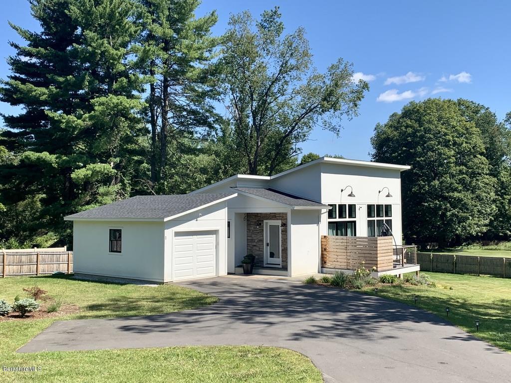 Built in 2018, this Stockbridge Contemporary has three bedrooms and four bathrooms in 2,232 square feet. There is a gas fireplace in the living room and laundry room off the kitchen. The property features a walkout to a hot tub and large lawn with a firepit. It is just minutes into downtown Stockbridge. Listed at $795,000 by Berkshire Property Agents.