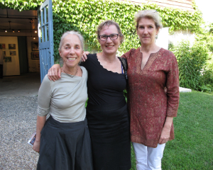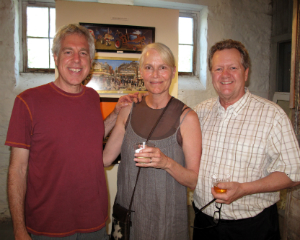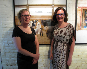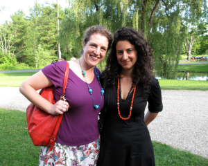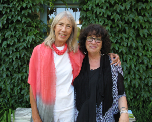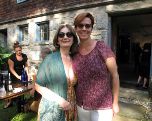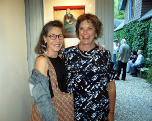 Amy Krzanik reports from Lenox. No one needs an excuse to visit the picturesque grounds of Stonover Farm, to sit by the pond and watch the ducks, or to visit with Tom and Suky Werman. But on Thursday, July 10, there was a fantastic excuse to stop by the Lenox B&B for a glass of wine, as IS183 Art School of the Berkshires opened its summer benefit show -- Landscapes, Farmscapes, Cityscapes, Mindscapes -- in Stonover's Barn Gallery. Curated by Suky Werman herself, the exhibit features new work by Maggie Mailer, Katherine Bowling, Mike Glier and Cynthia Wick, as well as works on paper by Lisa Breslow, photography by Fran Forman, Karen Halverson, Rob MacInnis and Paul Mutimear, and collages by Mike Metzger and Nancy Rubens. The exhibition will run through September 1, and can be viewed by appointment. A portion of the proceeds from sales will benefit IS183. Above: Hope Sullivan, executive director of IS183, and daughter Elke enjoy the summer evening.