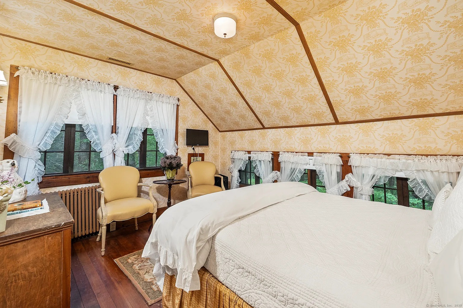 This cottage is fit for Frog and Toad, who I think would be passionate weekenders with a home base in NYC and an obsession with vintage fixtures. Down a long, tree-lined driveway, it’s all stones and moss on the outside, with warm vintage charm inside. Built in 1930 and literally named “Story Book Cottage,” it’s 2,450 square on 10 acres with four bedrooms and two bathrooms. This property in New Milford is so magical that it’s listed as “undisclosed.”