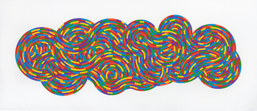 Sol LeWitt, Whirls and Twirls (Color), 2005. Linocut, image 15-7/8 x 47 inches. New Britain Museum of Art