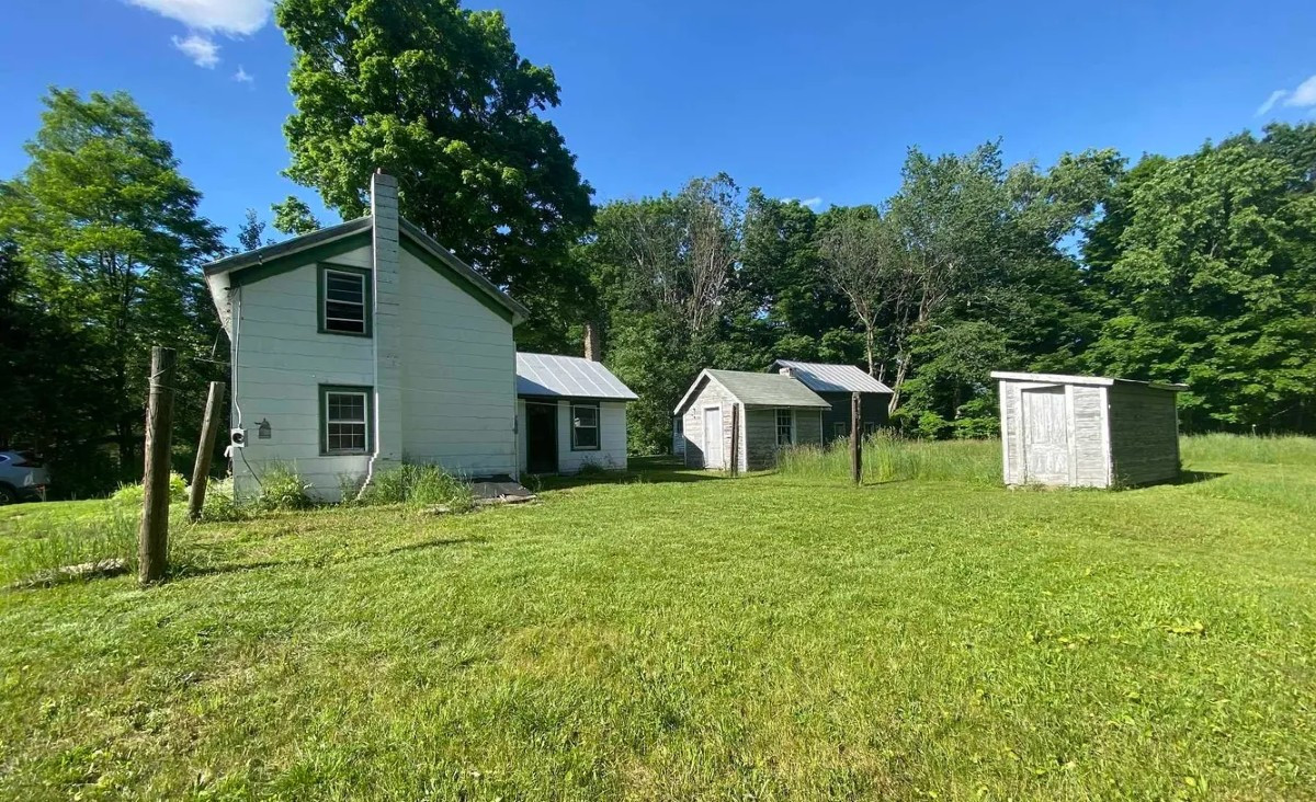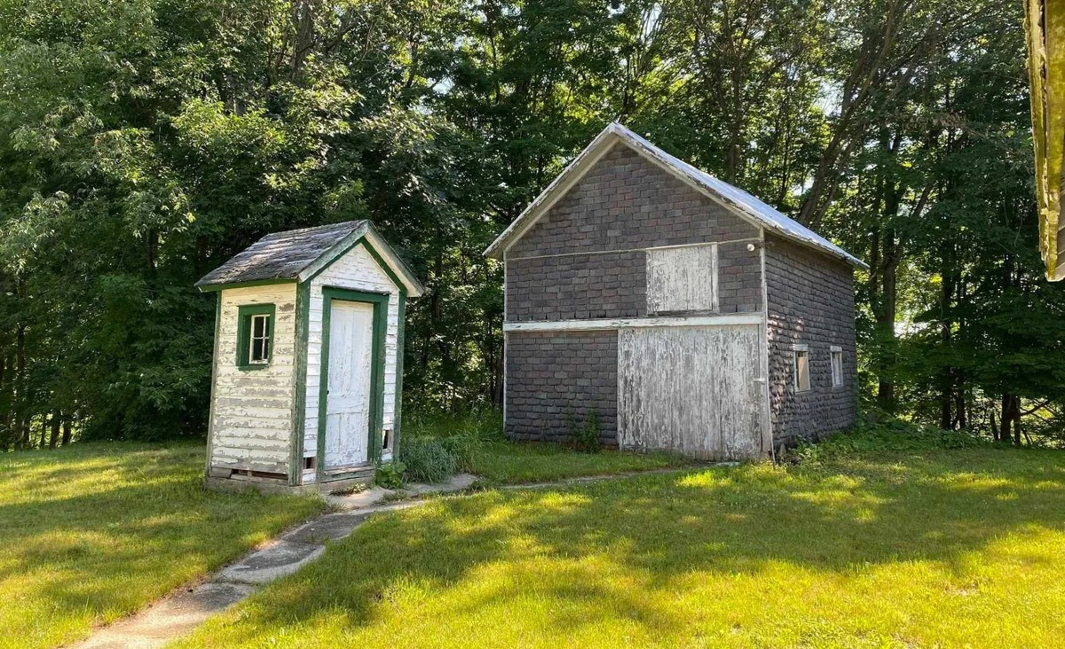 Built in 1850, this Eyebrow Colonial in Pine Plains is a blank state for someone with imagination. The house has two bedrooms and one bathroom in 1,008 square feet, plus a barn, cookhouse, and even a three-seater outhouse. The land slopes down to protected wetland. It's located on one acre of land and walkable to the Village of Pine Plains. Listed at $175,000 by Compass.