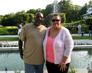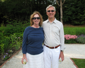 Proud members of The Mount, Tim and Niti Martin, revel in the lovely weather; Walter and Kelly Davis pose in front of the fountain.