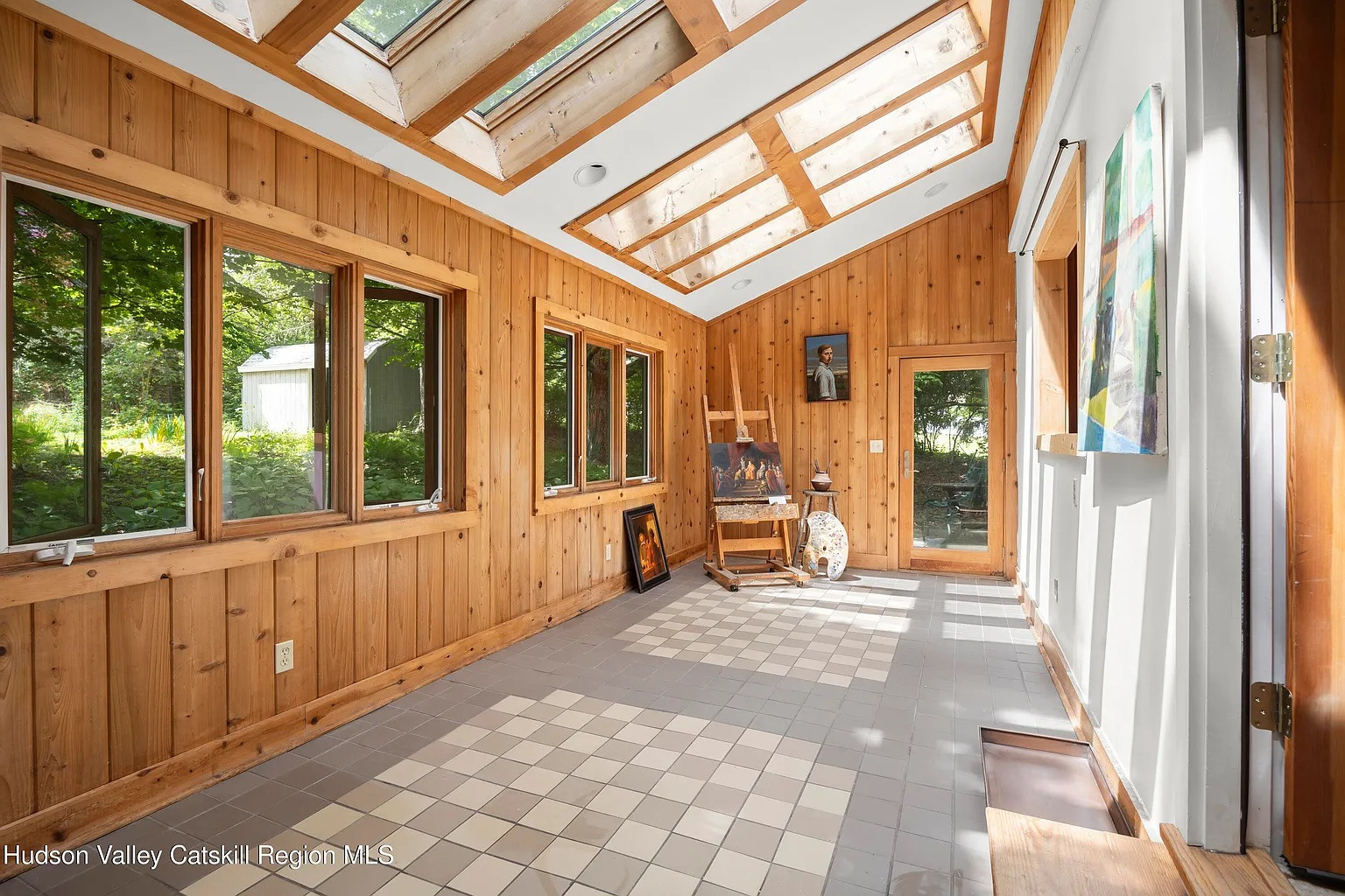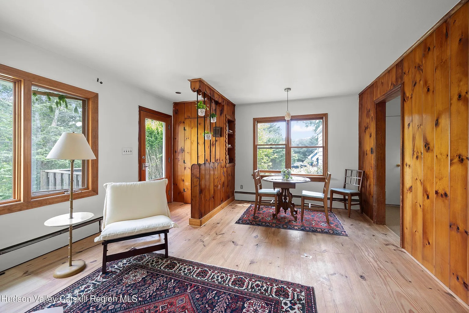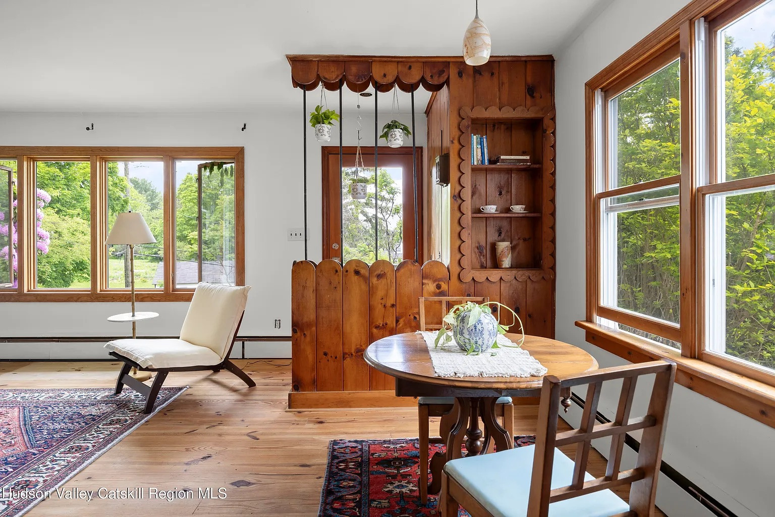 This cute 1953 ranch in Philmont is sure to go fast. It's another Midcentury moderm house that has been restored, but also preserved, with original wood paneling and built-ins. 85 Summit Street is on a hilltop, with 1,240 square feet, three bedrooms and one bathroom. It's got wide-board hardwood floors, a woodstove insert, and double-pane windows, plus a special gallery room, originally a breezeway and now a radiant-heat studio space with a skylight.