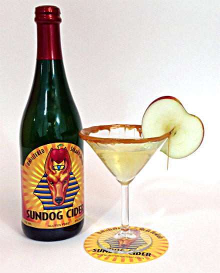 Ra took the glass. The smell of fresh cider rose to his nose, the light bubbles played across his lips, his tongue tasted the fresh crisp taste. He swallowed the sweet amber liquid and was pleased. So goes the legend of Sundog Cider. If you'll lift your suspension of disbelief for just a moment, we will tell you that Sundog Cider was founded in 2013 in Chatham, NY as a product of Sundog Solar, which installs solar electric and solar thermal systems. Many of Sundog Solar's clients are local farms, and a lot of those are apple farms. You can put the rest together, but it's more fun if you stick with the storybook legend so colorfully told and illustrated here. We need some of that sun, and that Sun Ra, and we'll be needing it right through Thanksgiving. So we asked Sundog Cider's owner, Jody Rael, to bring us some apple-y sunshine with a cocktail made from aromatic hard cider fermented from a blend of Hudson Valley apples. (And it's hand crafted in a 100% solar-powered mill, so you can drink responsibly in more ways than one.) He and his staff whipped up this specialty cocktail to kick off Thanksgiving in a festive way. The crispness of Sundog Cider pairs perfectly with the buttery caramel vodka. As the legend concludes, From that day on, Anubis would meet Ra at the end of each day with a glass of hard cider and the sun would set and all was right with the world.Sundog Cider CocktailIngredients:3 oz. Sundog Cider 2 oz. caramel vodka Caramel candies Apple (for garnish) Instructions:Put a few high-quality caramel candies in a shallow microwave-safe dish and use a microwave to warm the caramels until just melted (take care when melting caramels – they can burn easily). Dip the rims of the martini glasses into the melted caramel so the edges are coated (it will drip a little – that’s okay!). Pour 3 oz. of cold Sundog Cider into a 6 oz. martini glass, add 2 oz. of caramel vodka and stir gently with a swizzle stickto incorporate. Garnish glass with a slice of apple.