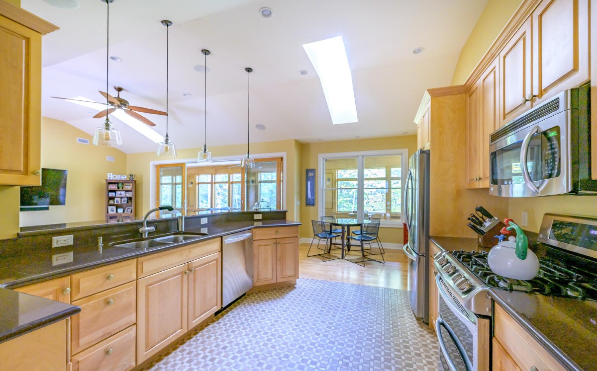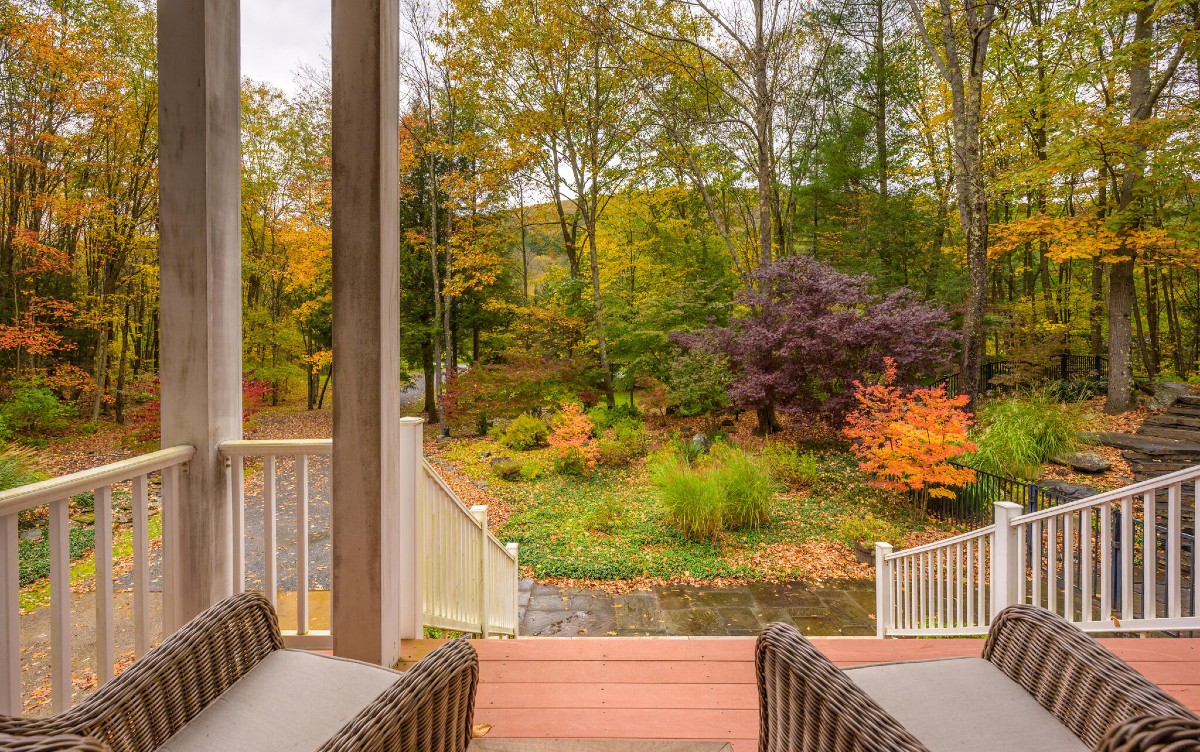 A custom-built Contemporary in West Stockbridge features a spacious sunroom.