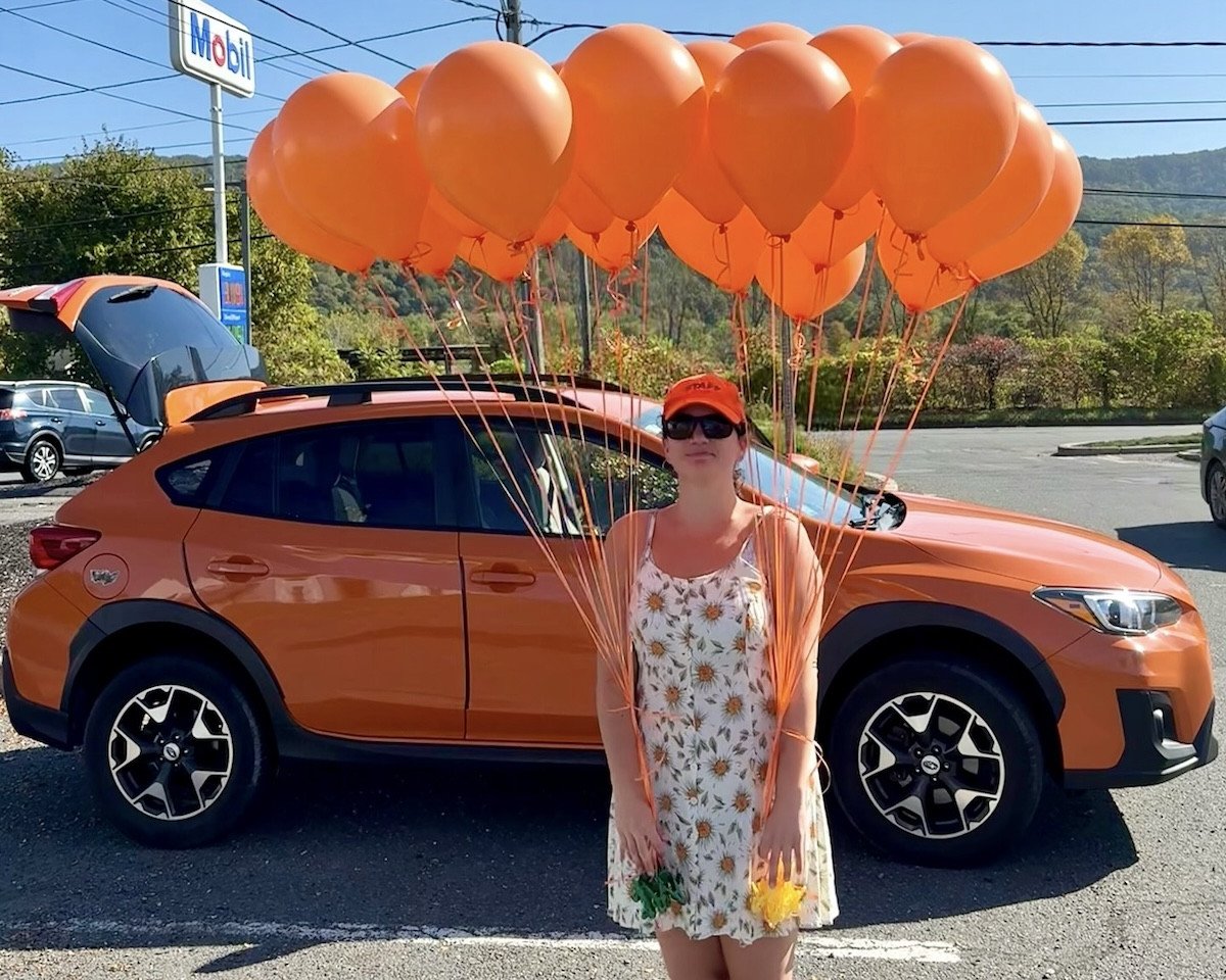 - Michelle KaplanOn a sunny Sunday morning in Great Barrington on September 28, ordinary traffic was briefly upstaged by something extraordinary: a convoy of 14 Sunshine Orange Subaru Crosstreks, each topped with orange balloons, honking and waving their way around town. The 1st Annual Sunshine Orange Subaru Crosstrek Meet-Up and Parade was the brainchild of Michelle Kaplan, a local radio host and energetic cultural instigator who admits she came up with the event on a whim.