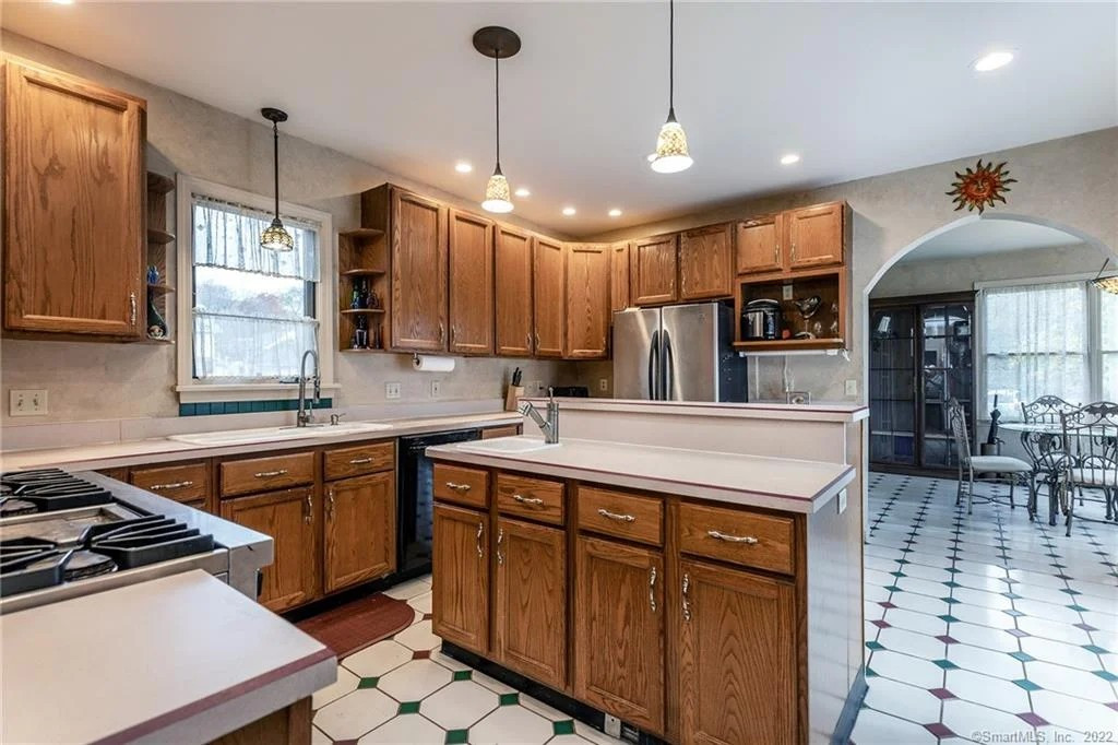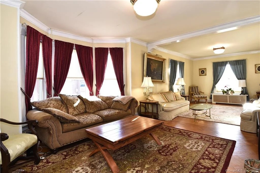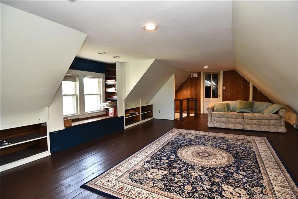 Built in 1888, a Queen Anne Victorian is set amid other historic homes on Megeon Avenue in Torrington. It offers over 3,6000 squre feet of living space with the crown molding and quarter-sawn oak floors intact. The house has five bedrooms and four bathrooms, living room with a wood-burning fireplace, chef's kitchen, media room, side porch, and large brick patio. Listed at $397,000 by Elite Realty.