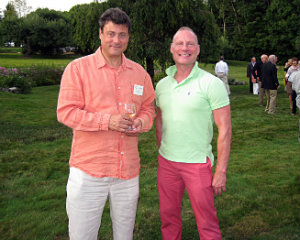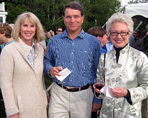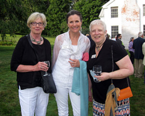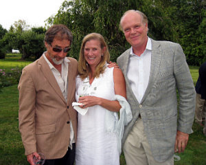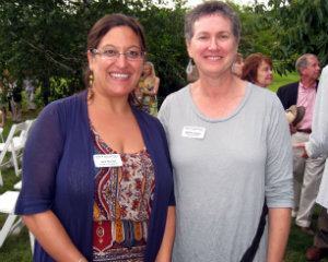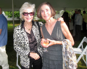 Lisa Green reports from Litchfield. Marigolds came to life, giant elephant skeletons lurked in the garden and dancers pivoted through the air while clinging to a gyroscope at the garden party hosted by Anthea Disney and Peter Howe on Saturday, August 16. The occasion was the annual fundraiser for the Susan B. Anthony Project, whose mission is to promote safety, healing and growth for all survivors of domestic and sexual abuse. The marigolds and other shape-shifting creatures were actually dancers from MOMIX, the wildly imaginative dance company that has over the years donated 11 performances to the Project. Each year, the Susan B. Anthony Project, based in Torrington, CT, provides counseling, shelter and support services to 2,500 survivors of domestic violence and sexual abuse. State and federal funding provides only 40 percent of the annual budget, so events such as this one help to make ends meet, explained Executive Director Barbara Spiegel, at right in photo above with Gina Deveaux, director of development.