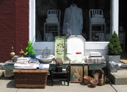In honor of Bastille Day (July 14), and because she just rented her house for an entire year, Carol Neiley, owner of Basic French, is having a tag sale at her Red Hook shop this weekend (Friday-Monday). Most of the stuff in the sale comes from her much-published (Victoria, Country Home, Romantic Home) farmhouse nearby, which she has let furnished but sans excess linens, baskets, dishes, and doo-dads, such as those in the photograph below.