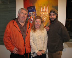 Amy Krzanik reports from Pittsfield. The third annual TEN SPOT invitational art show, now up at the Lichtenstein Center for the Arts, features ten of Berkshire County's best contemporary artists. The rescheduled artist's reception on February 18 helped the 10X10 Upstreet Arts Festival kick off its celebration of theater, art, film, music, comedy, dance and more. Artists exhibiting in the show, but not pictured below, include Karl Mullen, Jeanet Ingalls and Laurie McLeod. Sponsors of the show, Mission Bar + Tapas, used the occasion to debut their new spring menu, to the delight of guests. The exhibition will be on view through February 28 and the Festival continues through February 23, with plays at the Barrington Stage Company running through March 2. (Shown above: Chris Farrell from lead sponsor of the 10 x 10 Festival, Berkshire Gas, Shiobbean Lemme and Michael Boroniec.