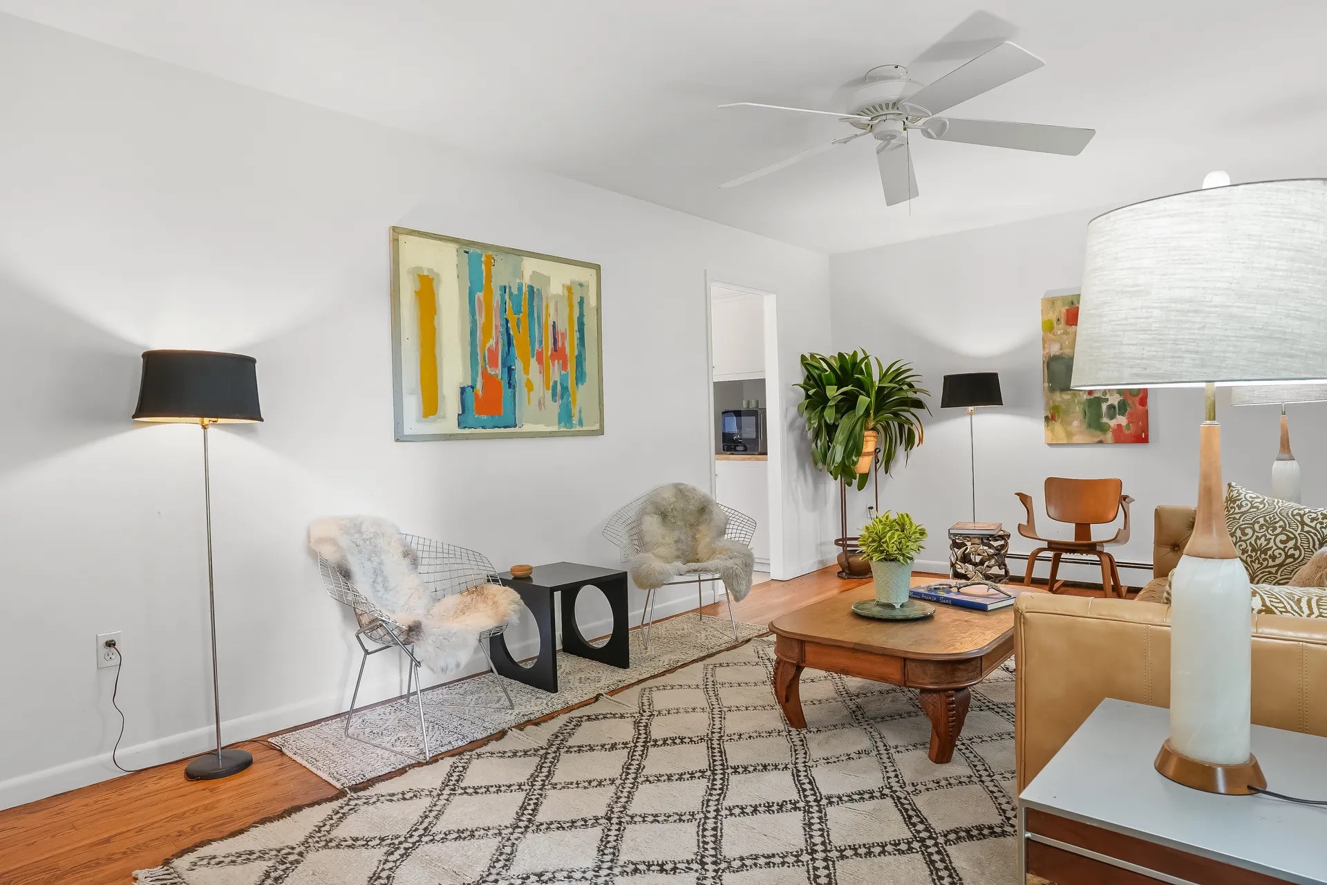 Set on a tiny 7,396-square-foot lot, the property features a driveway with space for multiple cars, a one-car garage, and a deck for extending space during the summer.