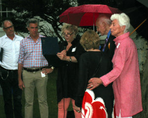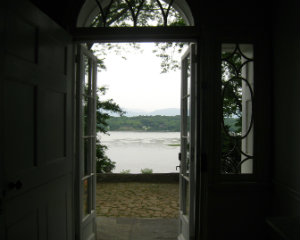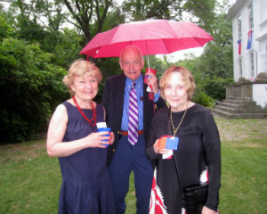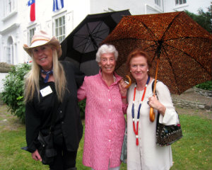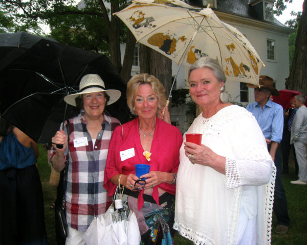 Even on a drizzly day, the view from inside the Clermont mansion is compelling; Liz Pierce with honorary chair Joan Davidson and Edwina Sandys.