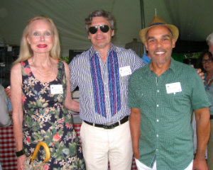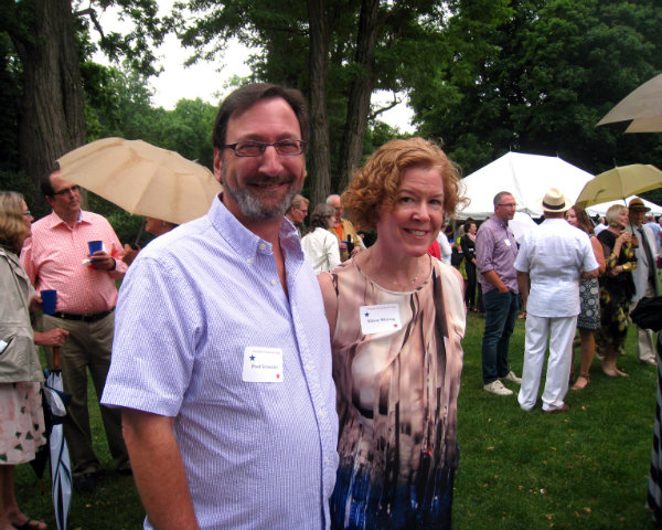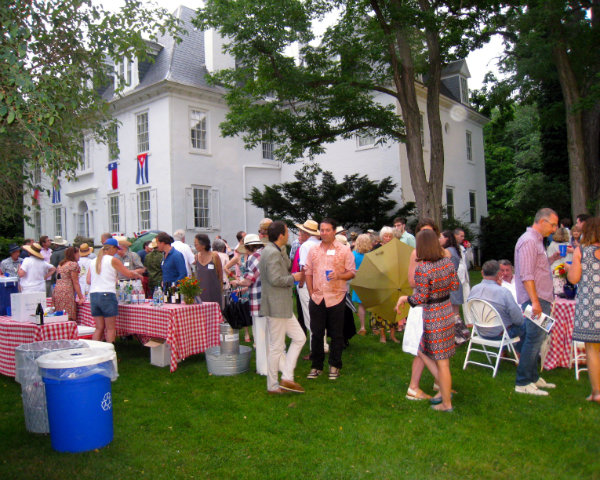 Lisa Green reports from Germantown. When you need a theme, it helps to look at your honorees' backgrounds for inspiration. Carey Maloney (RI’s The Wandering Eye) and his husband and co-honoree, Hermes Mallea, principals in the M (Group), provided both the genesis and the decorations for the Friends of Clermont Summer Gala on Saturday, July 30 held on the grounds of the historic mansion overlooking the Hudson River. This year’s gala paid tribute to Mallea’s Cuban heritage and Maloney’s Texas roots, offering mojitos and barbecue and encouraging guests to don cowboy hats or guayaberas. Alas, the accessory de rigueur turned out to be an umbrella, which helped save the turnout for the annual fundraiser. The honorees were lauded for their leadership and support (who do it with “style and kindness") in their efforts to help preserve the mansion, gardens, meadow and woodlands.