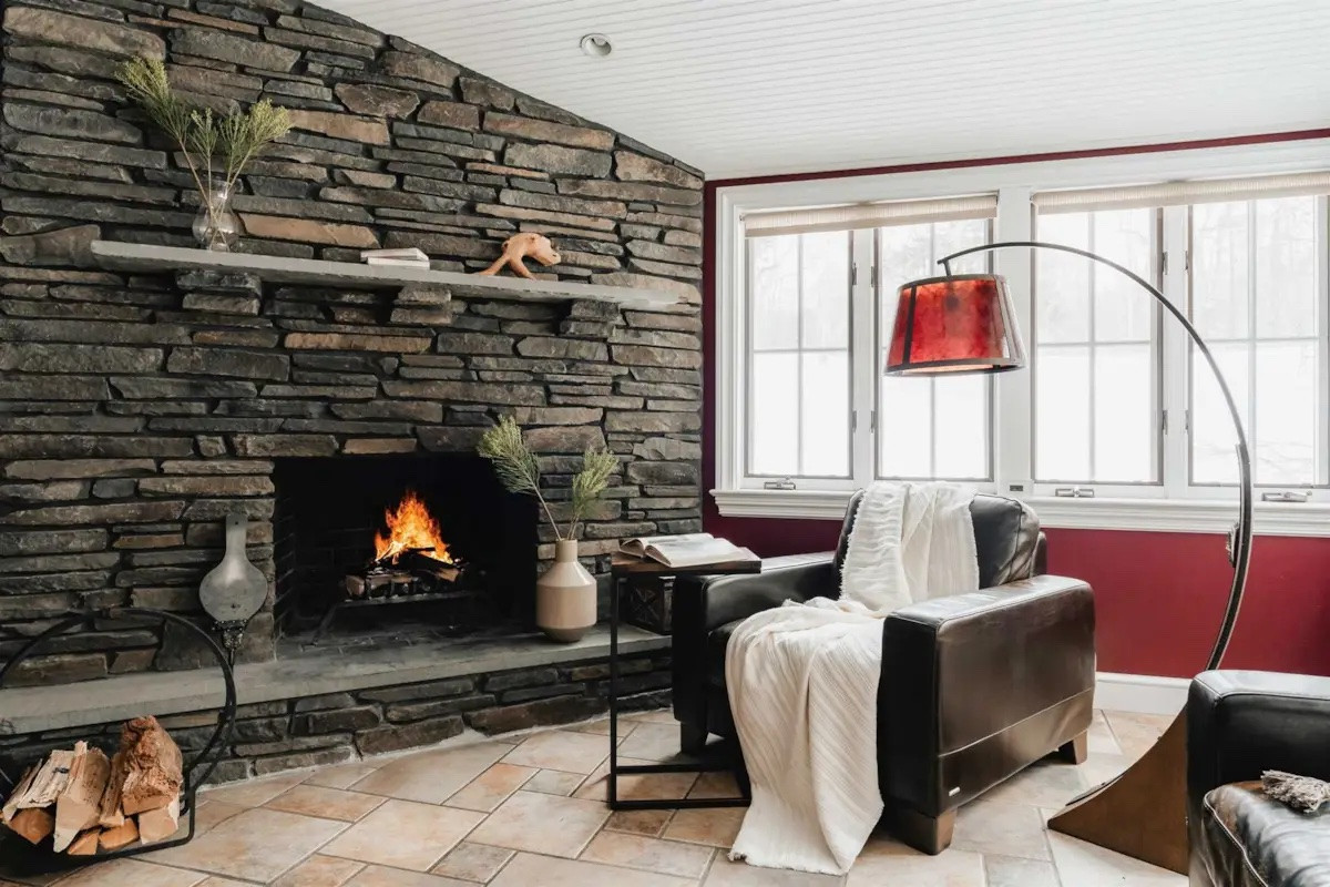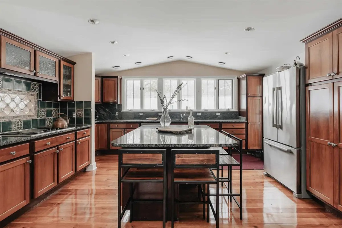 The Ambrose House is a 60-acre property just one mile outside the historic Village of Rhinebeck. Built in 1837 and continuously upgraded, it offers three bedrooms and two bathrooms. The farmhouse features a gourmet kitchen, two wood-burning fireplaces, radiant floor heating, and a detached two-car garage. Outside, there is an old-growth hardwood forest and three miles of trails. Listed at $1,475,000 by Houlihan Lawrence.