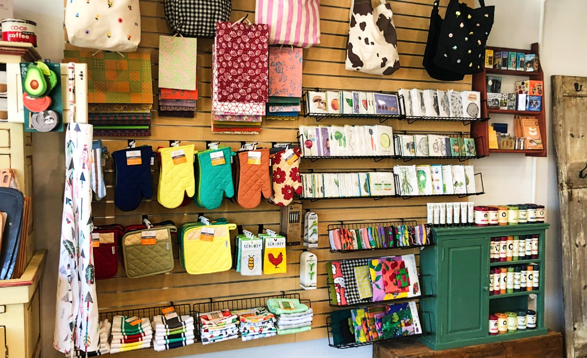 Candles, greeting cards, and jewelry are the gifty-type items that belong more in a separate shop than the Co-op downstairs, says Devorah Sawyer, the Co-ops marketing manager. Despite ithe Co-op's massive renovation a few years back, the kitchen products were beginning to take up too much real estate, and the decision was made to create an area for the non-food items. A dedicated space would also allow the Co-op to add to its product line and take requests from customers.