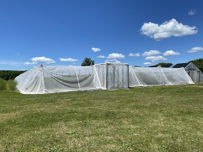 At the time, along with running the farm and store, Riggs was also the president of the New York State Berry Growers Association and was well tuned in to the scientific discussions surrounding the insects’ growing impact. In 2013 Cornell entomologists had grown a crop of blueberries under fine netting. The tests weren’t perfect but showed promise. Too many Spotted Wings were still getting in.