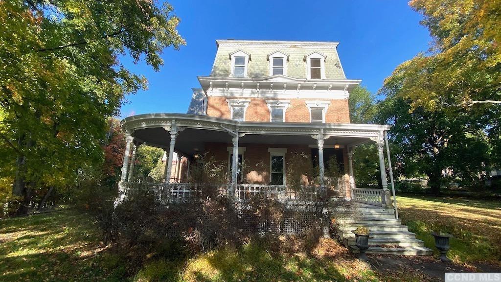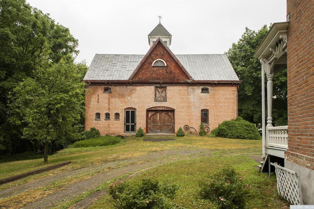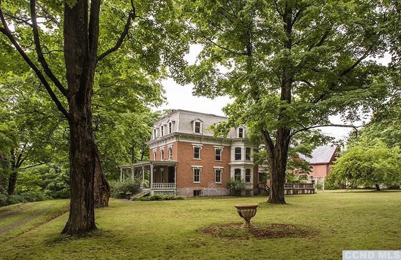 The nearly 5,000-square-foot brick house in Philmont has 9 bedrooms, 6 baths, a formal parlor, paneled dining room, and original features throughout such as pocket doors, parquet floors, high ceilings, bay windows and ornate woodwork. The third floor, with its separate kitchen, offers living quarters for a caretaker, chef and/or nanny. There is also a three-story carriage house. The entire property could be a private residence, a corporate headquarters, or a retreat center. It's zoned for general commerical, residential, or both. Listed at $995,000 by The Kinderhook Group.