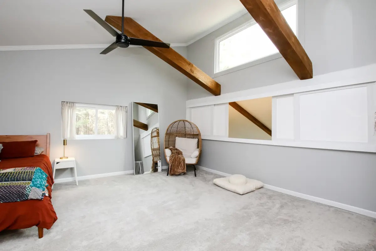 This tri-level chalet sits among the tall pines in Valatie. It has five bedrooms and three bathrooms, a finished lower level, all new windows, doors and paint, and significant land improvement. Also include: a sauna, an apres-ski fireplace and a wraparound deck. The Owl's Nest is sited on two-and-a-half wooded acres. Listed at $635,000 by Houlihan Lawrence.