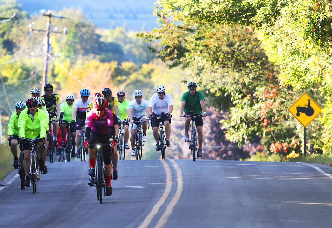 The routes change every year, offering riders a new serving of eye candy through the rolling hills of southeastern Columbia County. Cyclists traverse lightly traveled public roads (some routes take in small portions of the Rail Trail) winding through farmland and passing through county hamlets. The shortest route, 10 miles, is an easy ride geared to families; it’s mostly flat with some modest hills. The 18, 25, and 35-mile routes are designed for intermediate or stronger riders. For avid cyclists, the Ramble has a 50-mile route that goes through all three town. Three years ago, prodded by hard-core cyclists, the Ramble added a 100km/62.1-mile route, a challenge with rolling steep hills that doesn’t appear to deter the most serious riders. In 2019, the last year the Roe Jam Ramble rambled, the 100K was the most traveled route.