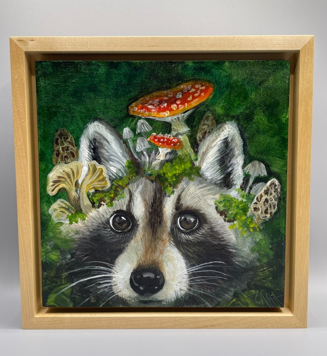 All of the wildlife is eventually released. For the farm animals I sometimes find them adoptive homes. A lot have come from really tough situations, so this is their forever home. The majority of the animals are really elderly — my chickens are 17 years old! Right now I have around 40 or 50 animals on the farm, including pigs, woodchucks, raccoons, geese, chickens, an alpaca, donkeys, horses, an African tortoise, a quail, plus dogs and cats. I fully support the Bluebird Farm Sanctuary and Wildlife Rehab on my own and have sold art to support my rescue habit.