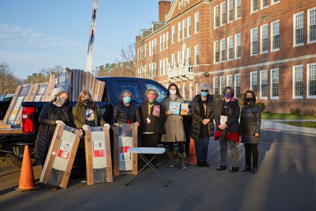 Hudson Literacy Fund Board at “Got Desks?” giveaway; Christine Jones, Ann Israel, Wendy Schmalz, Anna Skoda, Laura Backlund, Lisa Dolan, Marlena Peduzzi, Dr. Maria Suttmeier