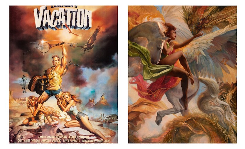 Left: Boris Vallejo, Vacation Poster; Right: Julia Bell, Pegasus Befriends the Muses