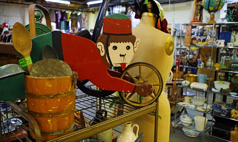 In spite of the fact that some middle-aged guy was playing the riff to “Smoke on the Water” ad nauseum on an out-of-tune guitar throughout my visit, my experience at Flea At 99 was an unexpected delight. The indoor multi-vendor market — on your right on Railroad Street as you enter Canaan from the north — houses 8,000 square feet of antique, vintage, collectible, new and used must-haves and what-are-these things. What makes it even more fun is that each of the 60-or-so vendors’ shops are strewn throughout the building with no rhyme or reason — some in separate rooms, others in the hallway or separated from one another by their own items for sale.