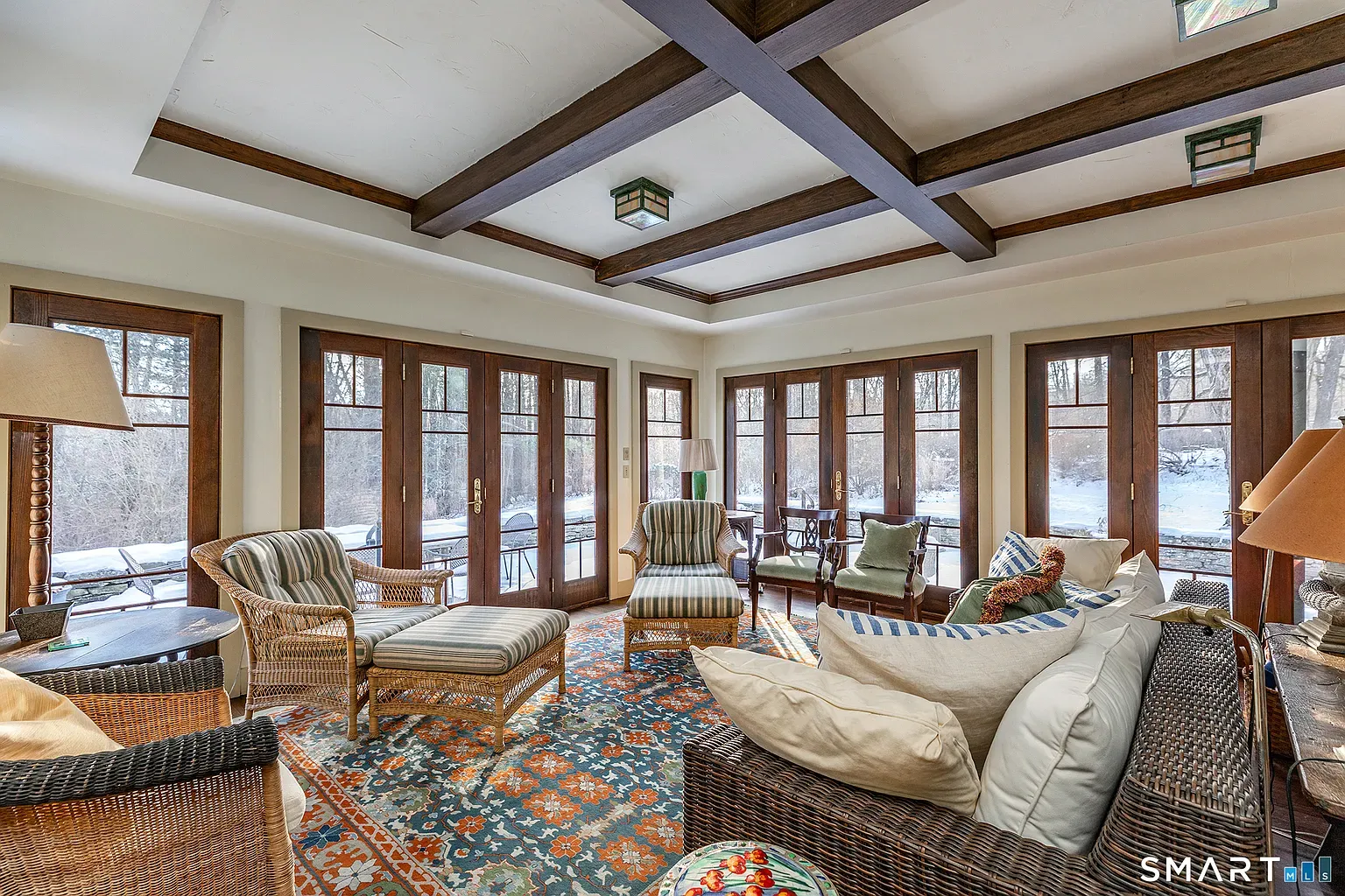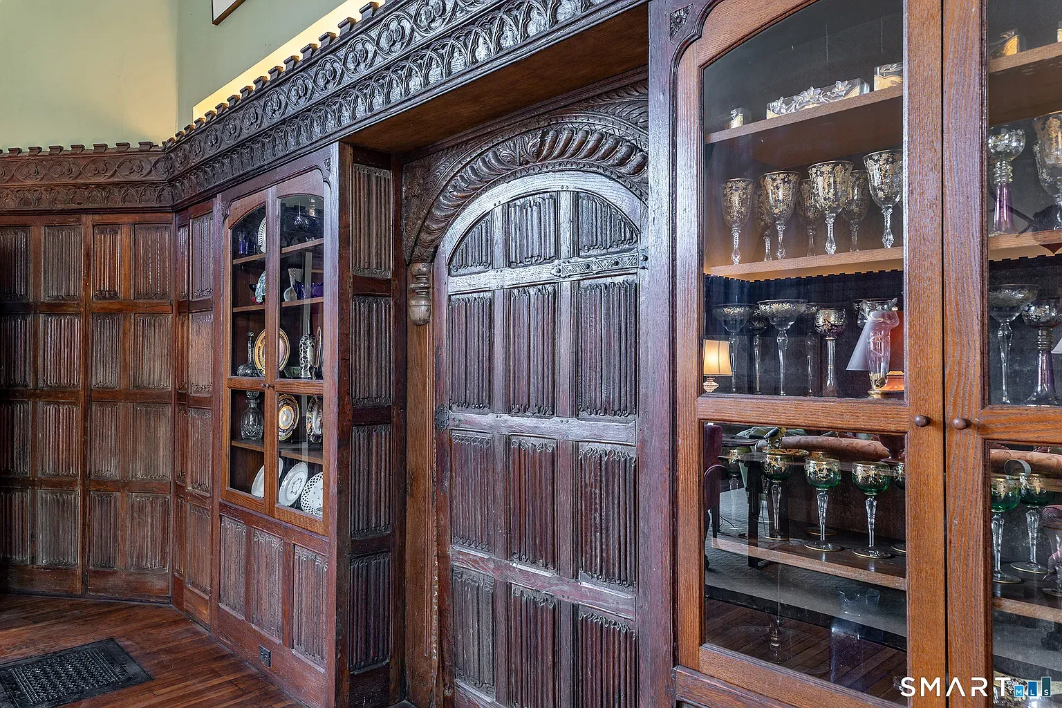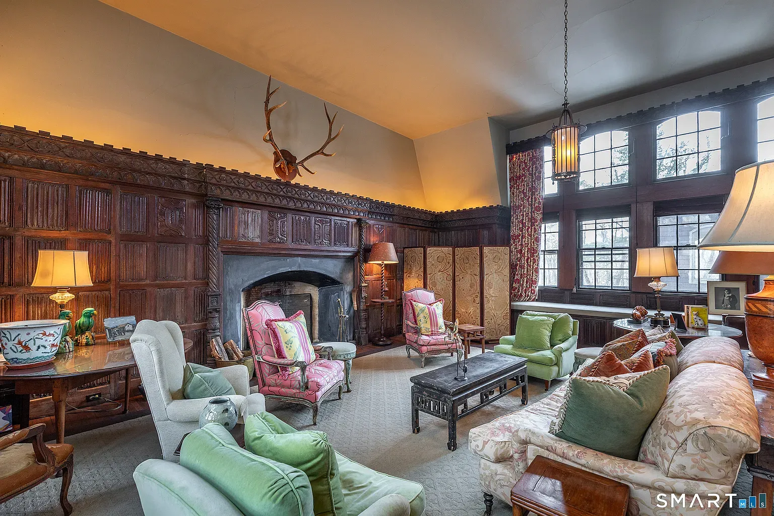 Much of what makes the interior compelling is its eclectic vibe: rooms that feel like they were ripped fromchapters of a romance novel. There’s a gracious main foyer that leads into a paneled sitting room with a substantial fireplace; a lower level that doubles as a glass-enclosed pool cabana with its own secondary kitchen and bath; and generous space that suggests both social life and quiet retreat. The house presents three to four bedrooms and four full baths in configurations that can flex from conventional living to creative use.