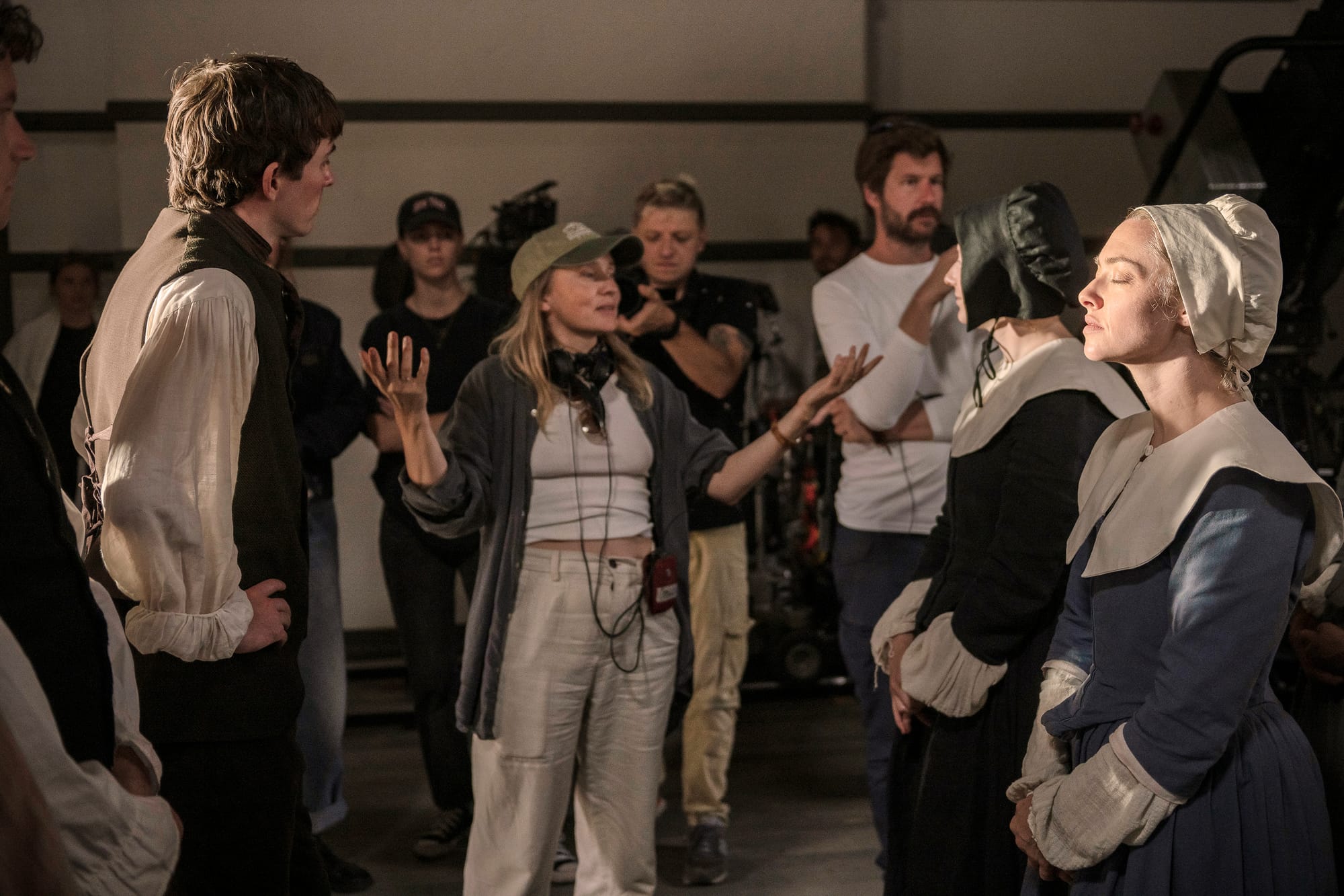 Fastvold’s decision to frame the film as a musical, using expressive, contemporary choreography rather than strict historical reenactment, is a daring and ultimately successful mechanism to convey when the Shaker faithful were filled with divine presence. For Sharon Koomler, collections manager at the Shaker Museum, the approach is less anachronistic than it might first appear. Music and bodily movement, she notes, were integral to early Shaker worship, particularly in the late 18th century, when ecstatic religious expression was common across rural America. While the film’s choreography is more structured than what would have occurred historically, Koomler views it as a good-faith translation rather than an invention. “The early days saw worship in a much more chaotic way than we would expect,” she says, emphasizing that visceral response was central to spiritual life.