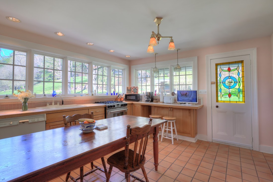 The Wheeler House (ca. 1850) in Hillsdale has three bedrooms and two bathrooms. The kitchen is spacious and there is an enclosed front porch. The home is surrounded by spectacular grounds including 100-year-old maples, many flowerbeds, an outdoor fireplace, and large vegetable garden. A fully converted barn serves as a studio or home office. Listed at $1,100,000 by Columbia County Real Estate Specialists.